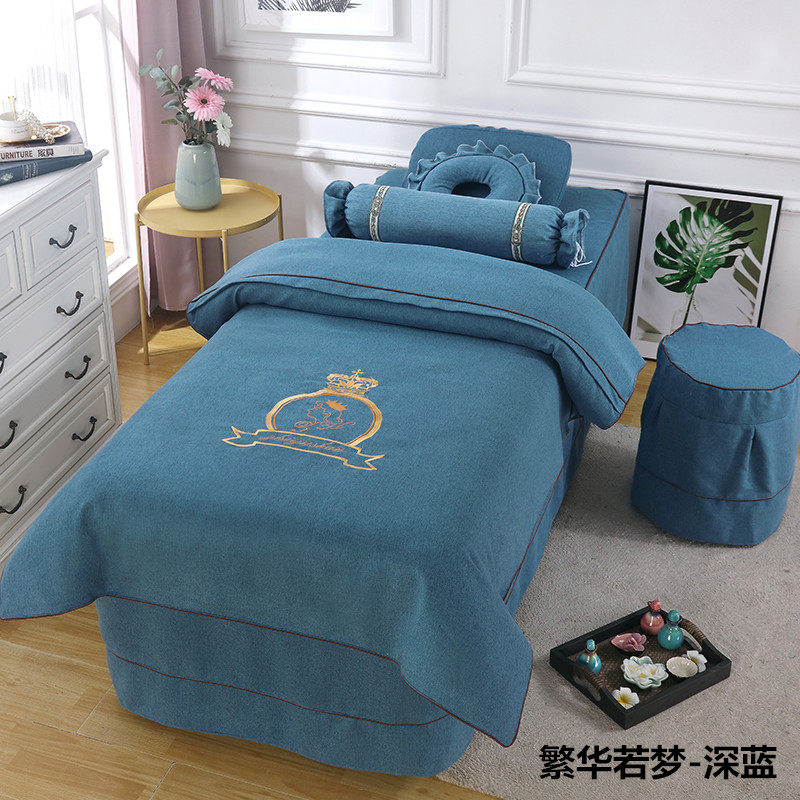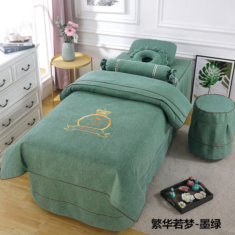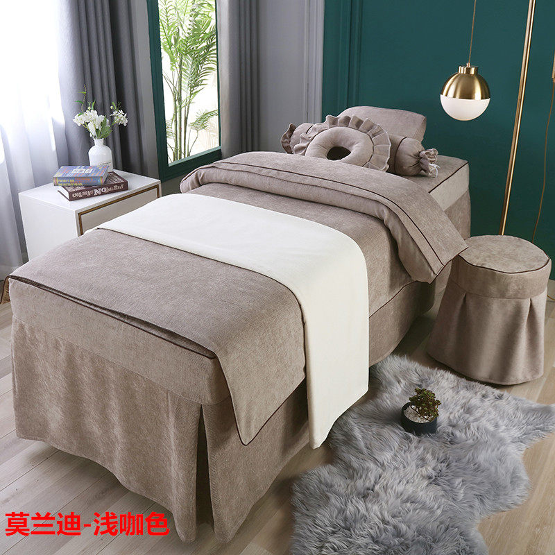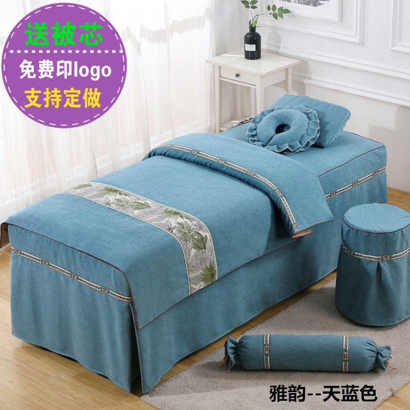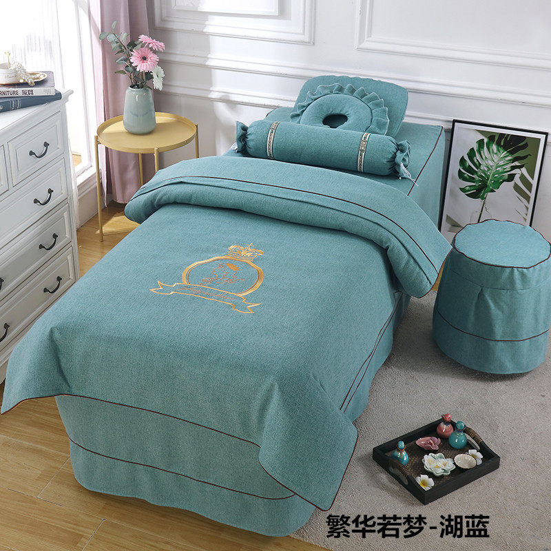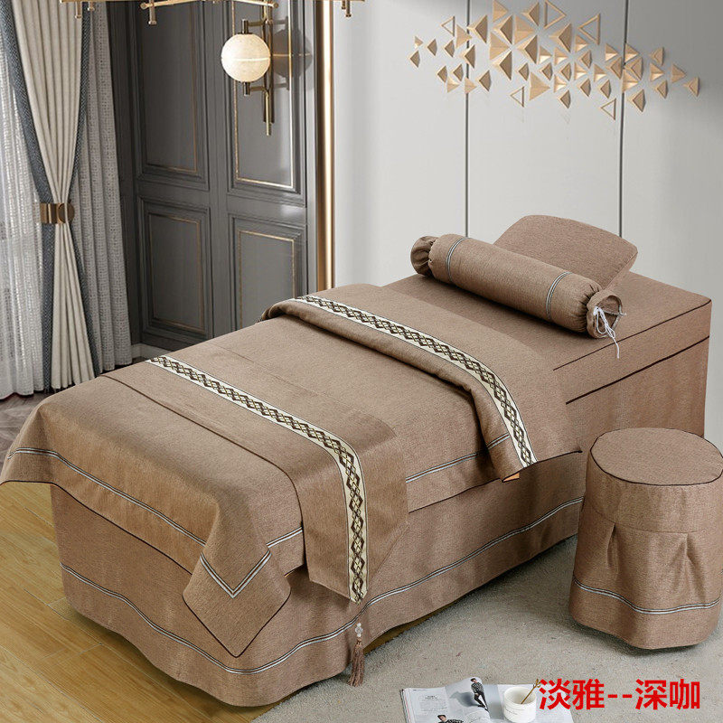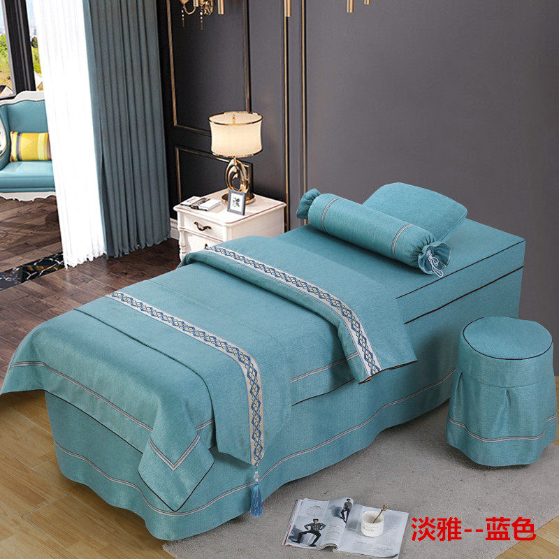 Высококлассное косметическое покрывало, хлопковый комплект, косметический массажер для мытья головы, 4 предмета, легкий роскошный стиль, для салонов красоты, увеличенная толщина, из хлопка и льна