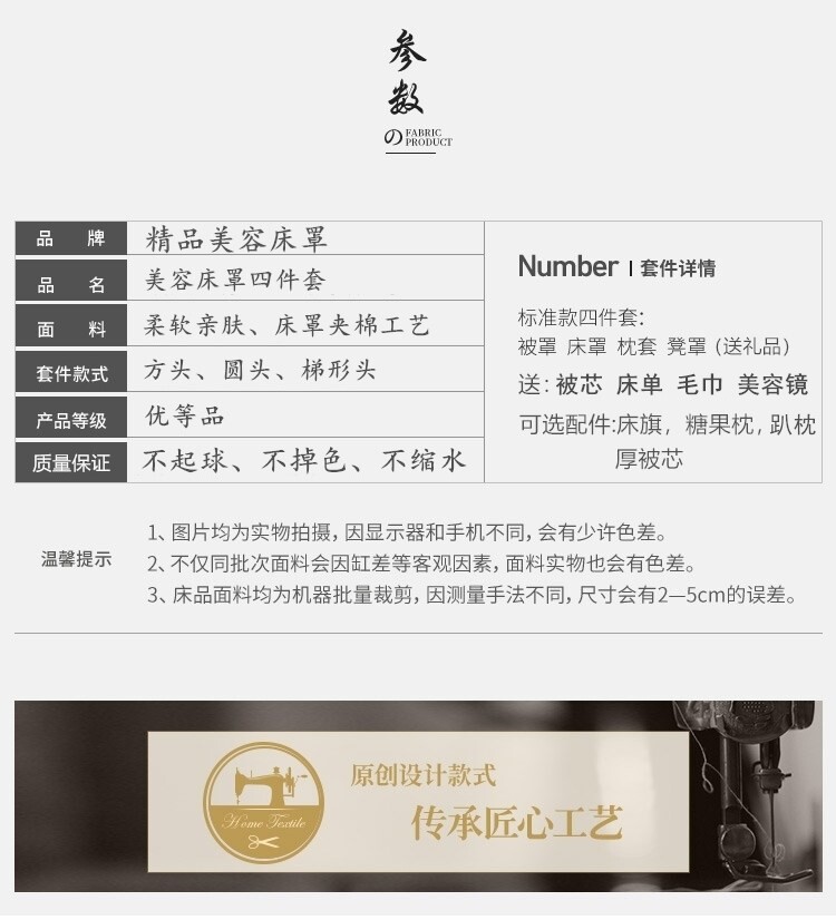 | Размеры простыней/кроватей: | Fangtou 190*80 [Four -Piece Set] Отправить ядро, Fangtou 190*70 [Four -Piece Set] Отправить ядро, Fangtou 185*70 [Four -Piece Set] Отправьте ядро, Fangtou 180*70 [Four -Piece Set] Отправить ядро, Fangtou 180*60 [Four -Piece Set] Отправить ядро, Круглая голова 190*70 [Четырехэтапный набор] Отправить ядро, Круглая головка 185*70 [набор четырех -купюр] Отправить ядро, Круглая головка 180*70 [набор четырех -купюр] Отправить ядро, Круглая головка 180*60 [набор четырех -цепей] Отправить ядро, Трапециальный 190*70 [Четырехпальный набор] Отправить ядро, Трапезиидальный 185*70 [Четырехпальный набор] Отправить ядро, Трапезиидальный 180*70 [Четырехэтапный набор] Отправить ядро, Трапециеидальный 180*60 [набор четырех -цепей] Отправить ядро, Однополосная крышка [Сообщение размера], Одиночное стеганое одеяло [принесите ядро], Индивидуальное обслуживание клиентов для других размеров |