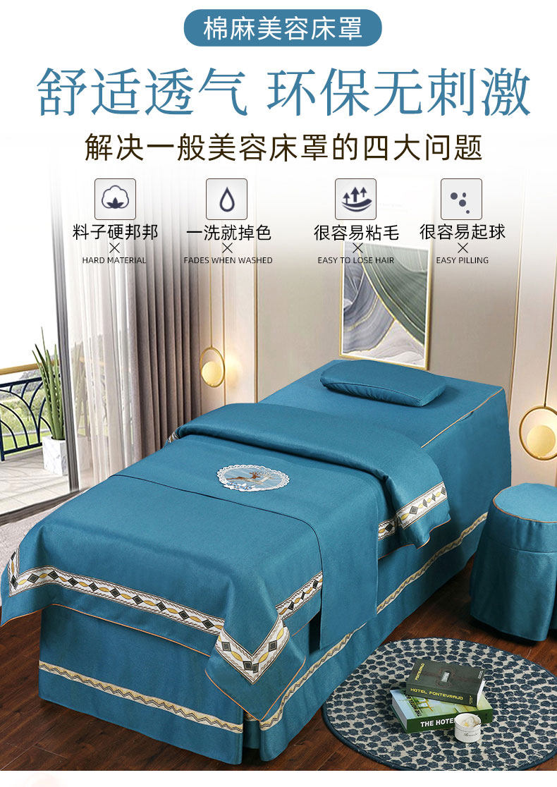 禾谱 Косметическое покрывало, хлопковый высококлассный комплект, элитный массажер, для салонов красоты, 4 предмета, из хлопка и льна, европейский стиль