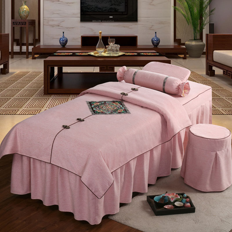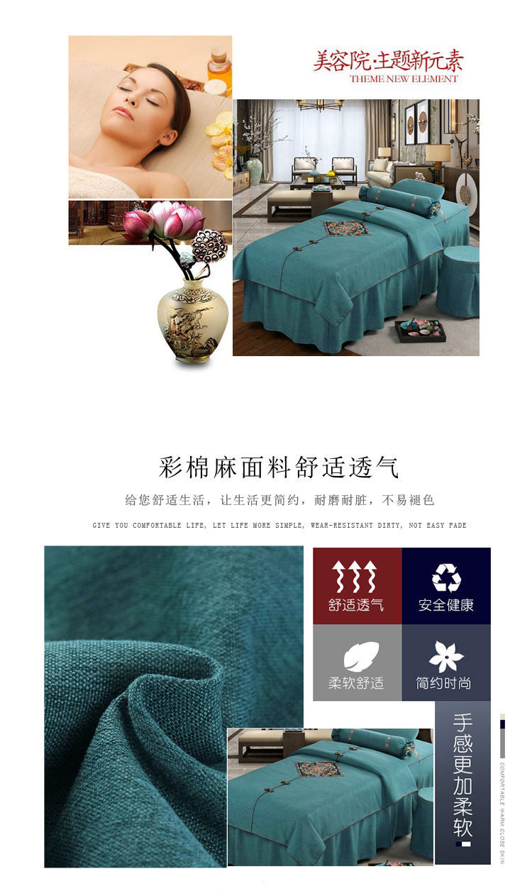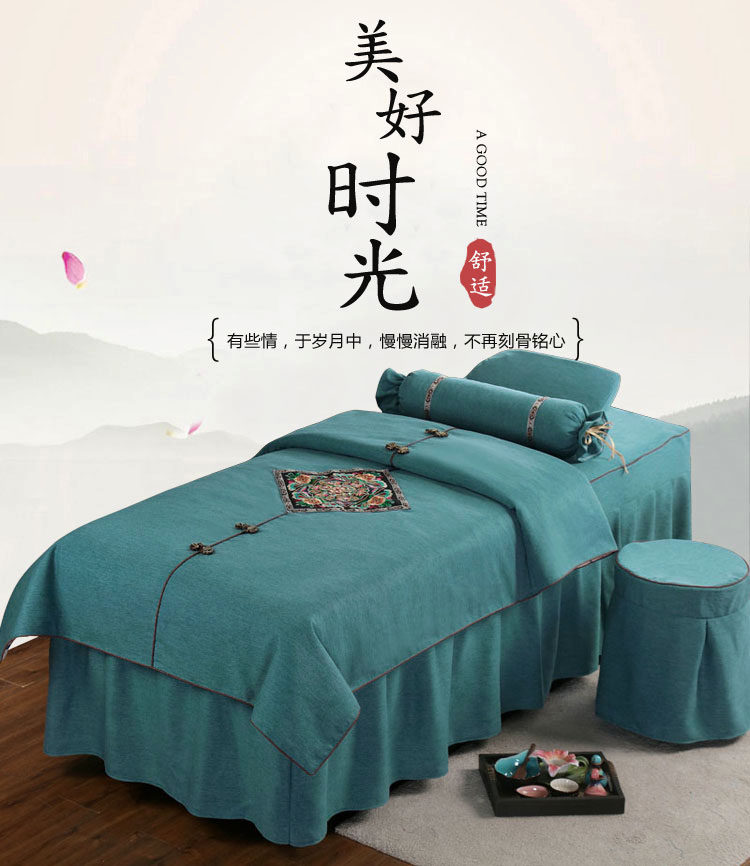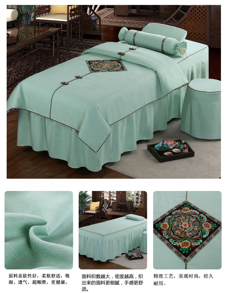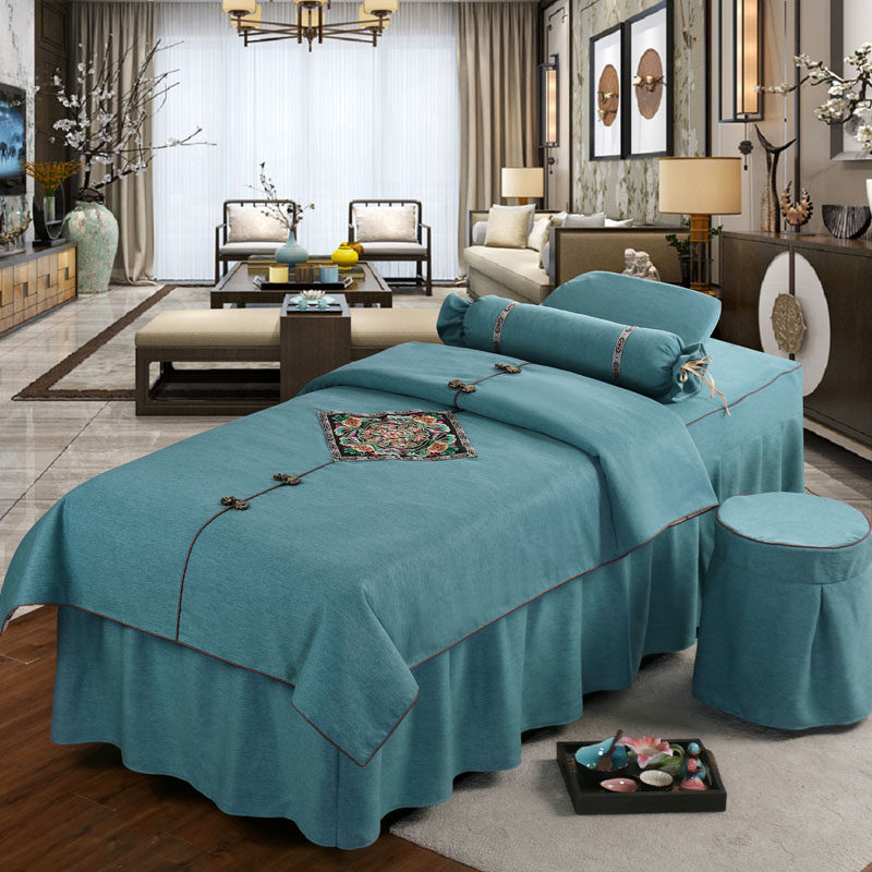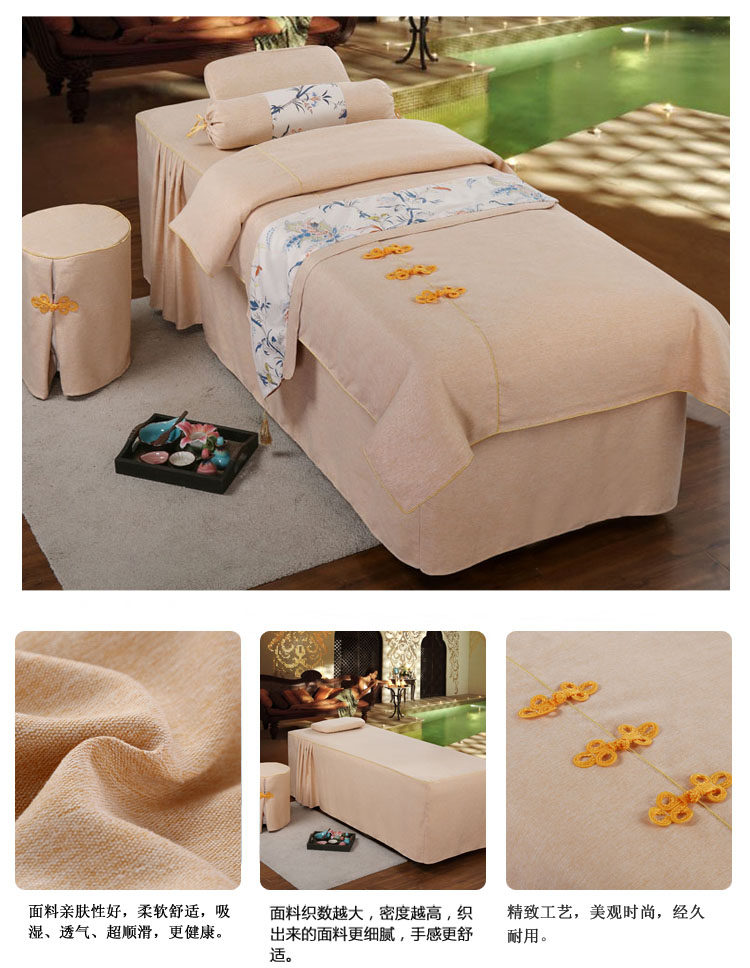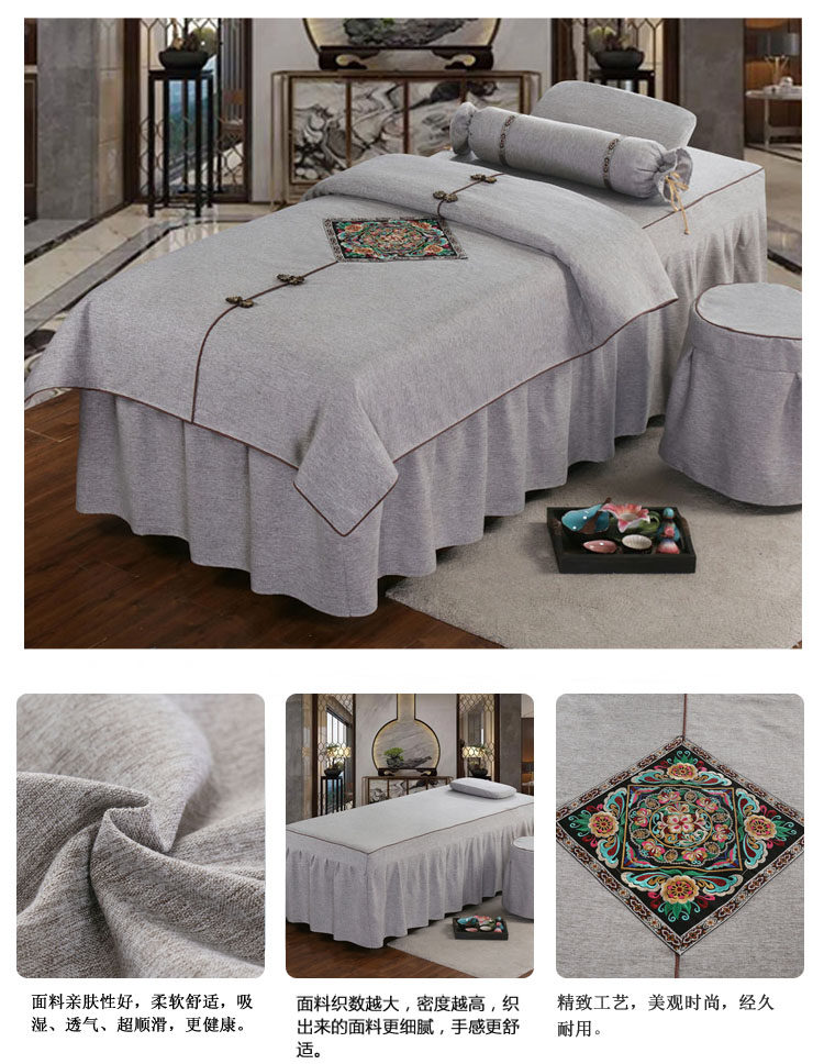 Косметическое покрывало, хлопковый комплект, косметический массажер для мытья головы, 4 предмета, простой и элегантный дизайн, европейский стиль, увеличенная толщина, из хлопка и льна, для салонов красоты