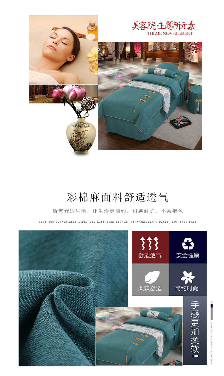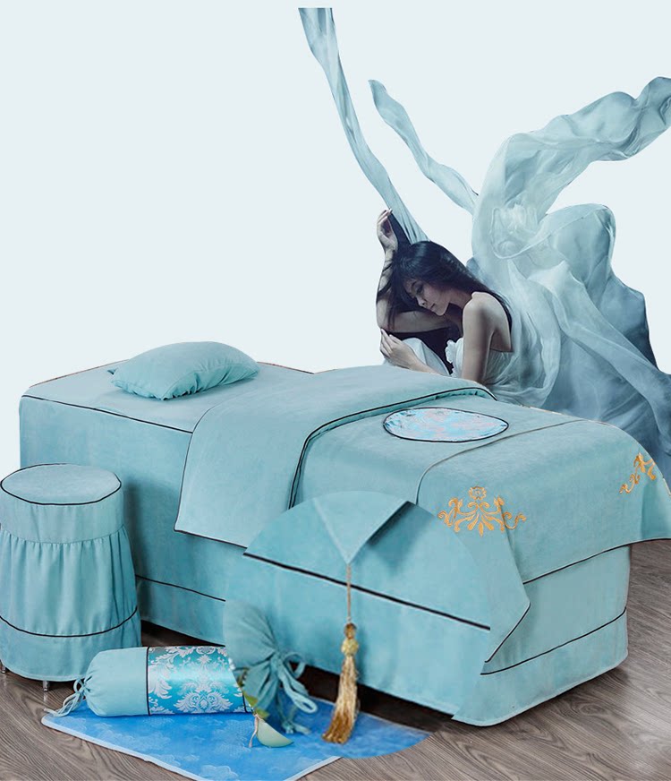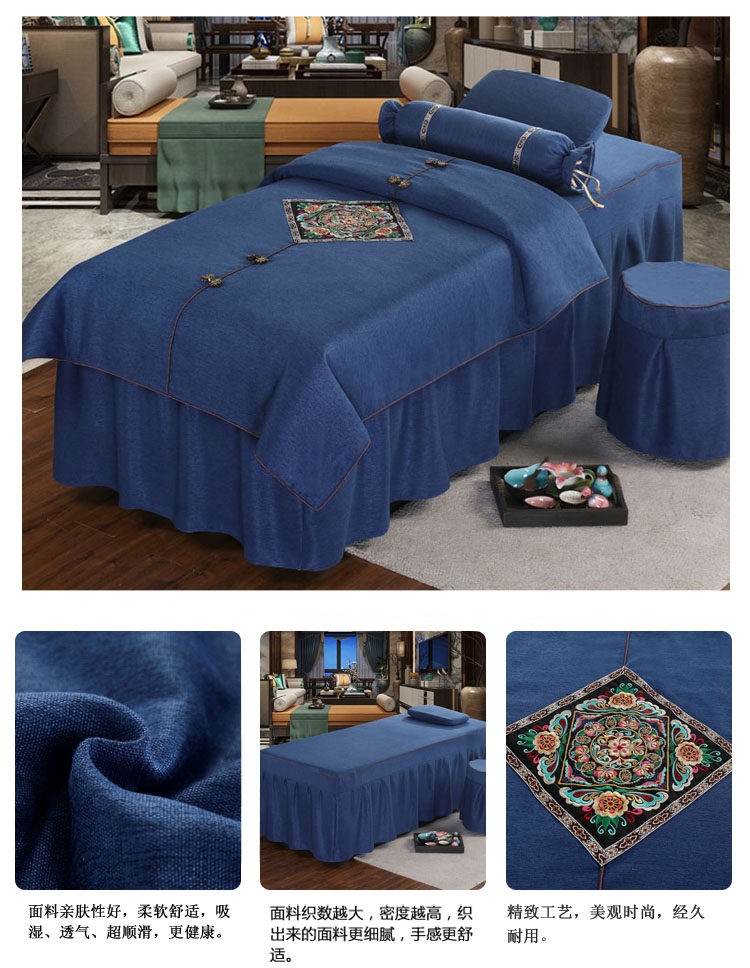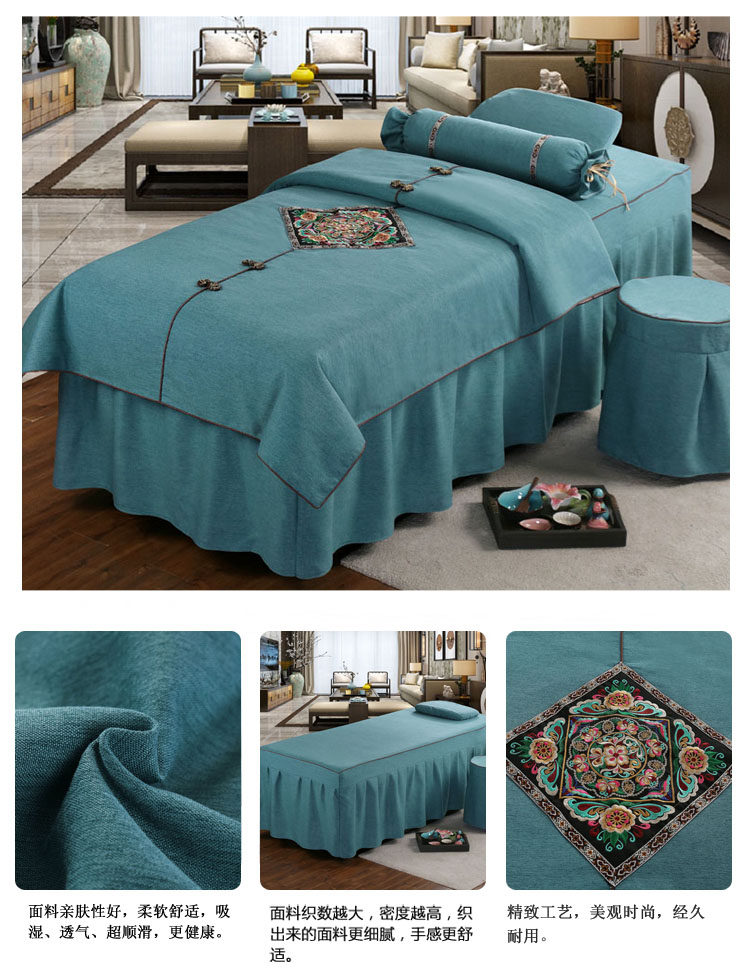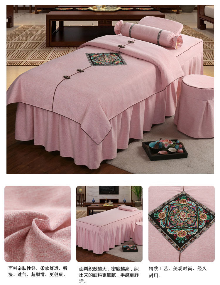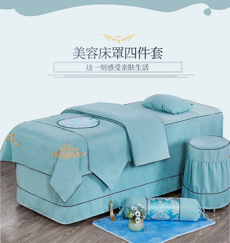 Косметическое покрывало, хлопковый комплект, косметический массажер для мытья головы, 4 предмета, простой и элегантный дизайн, европейский стиль, увеличенная толщина, из хлопка и льна, для салонов красоты