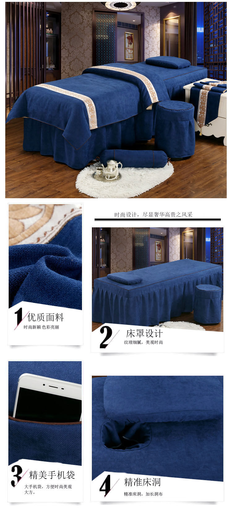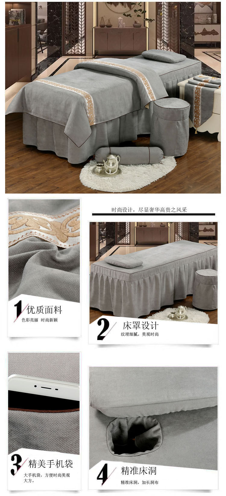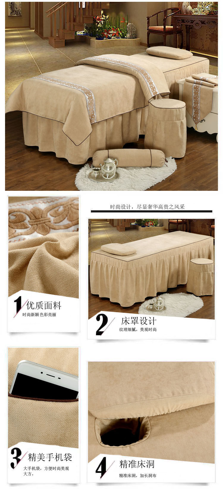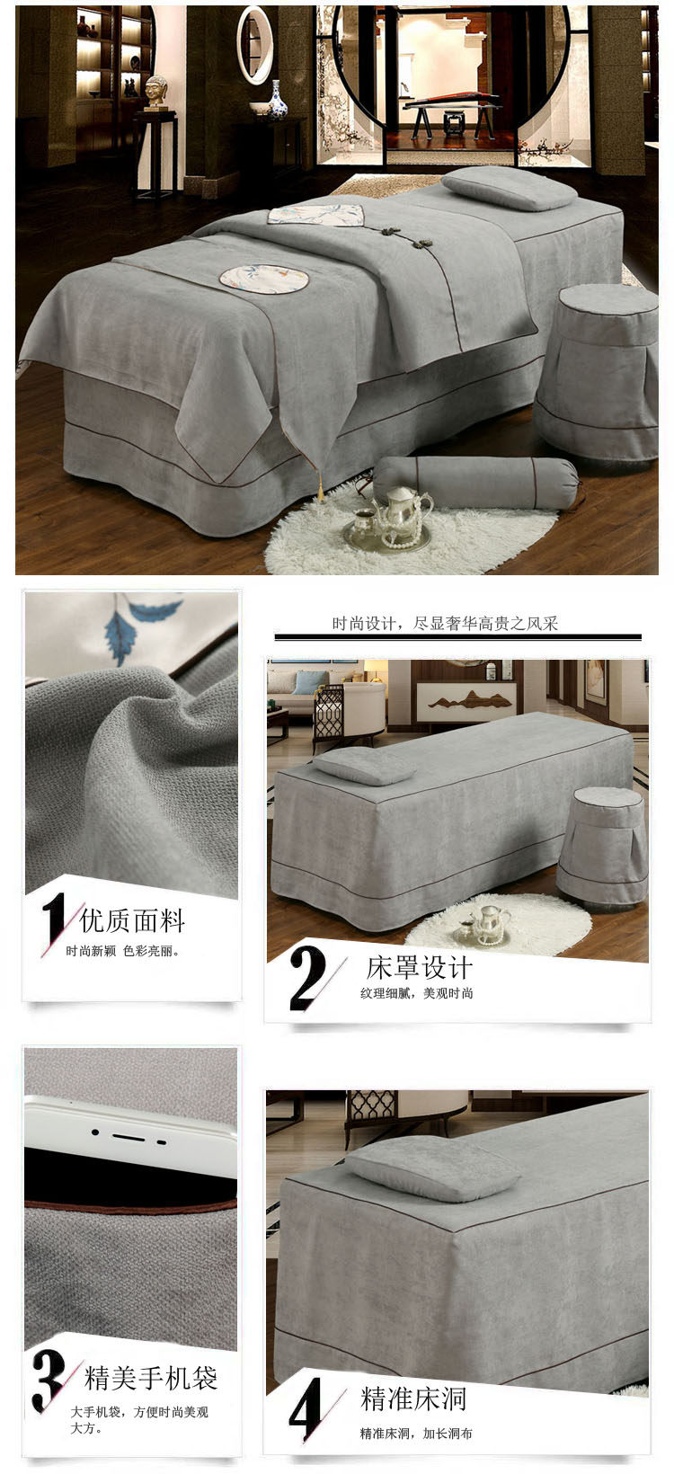 Косметическое покрывало, хлопковый комплект, косметический массажер для мытья головы, 4 предмета, простой и элегантный дизайн, европейский стиль, увеличенная толщина, из хлопка и льна, для салонов красоты