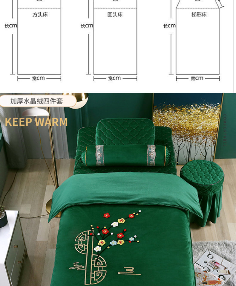 Косметическое покрывало, комплект, косметический массажер, новая коллекция, 4 предмета, для салонов красоты, китайский стиль, простой и элегантный дизайн, с вышивкой, увеличенная толщина