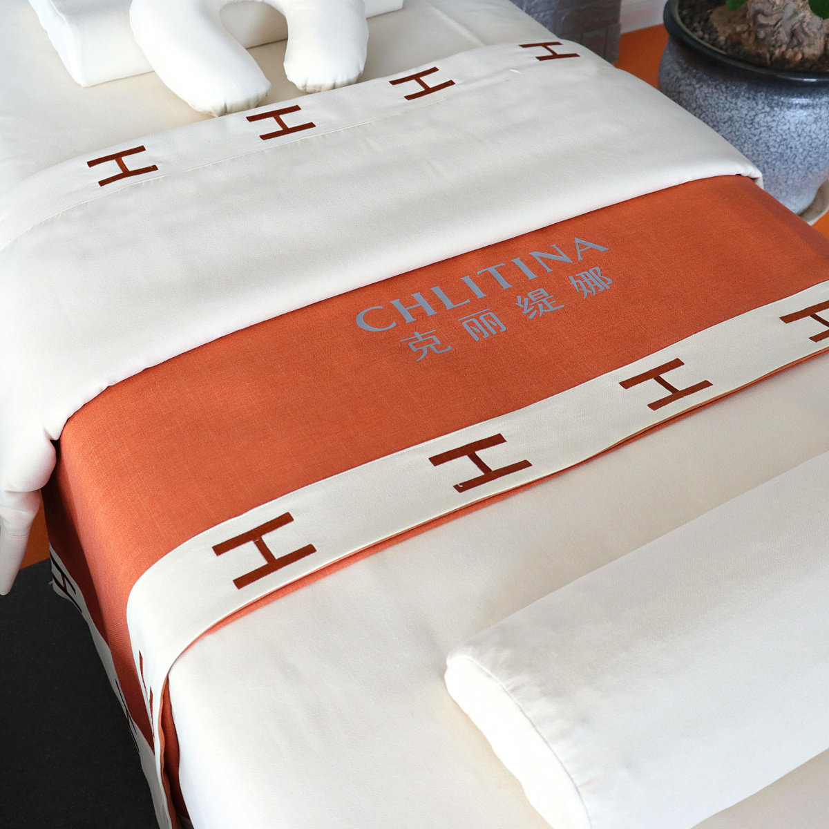 玲玲 Косметическое покрывало, комплект, массажер, простыня, пододеяльник, для салонов красоты, 4 предмета, делается под заказ, с печатью вашего логотипа, легкий роскошный стиль