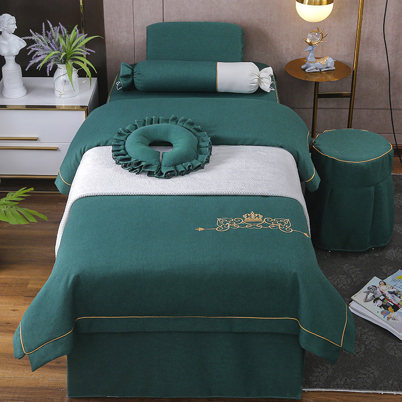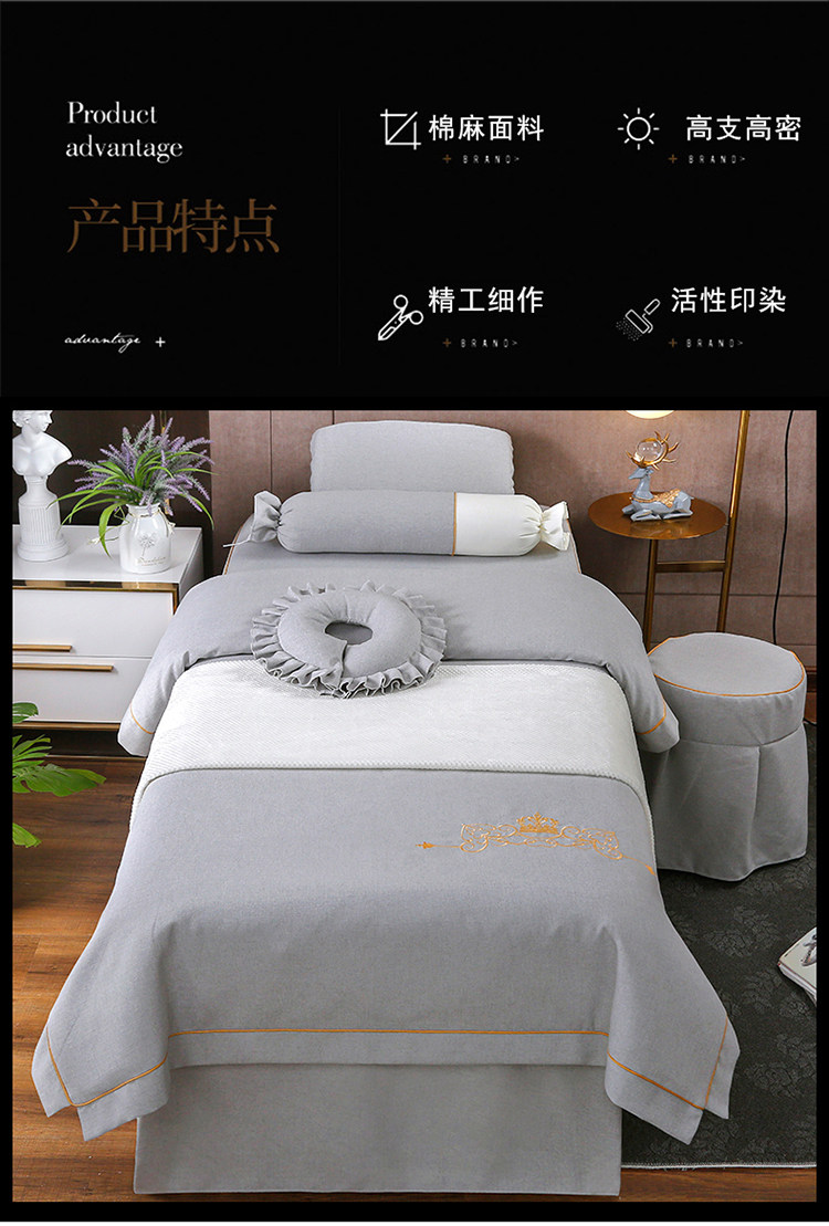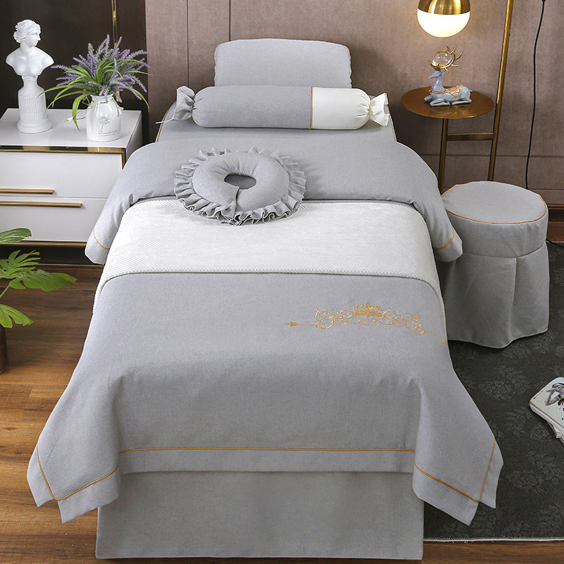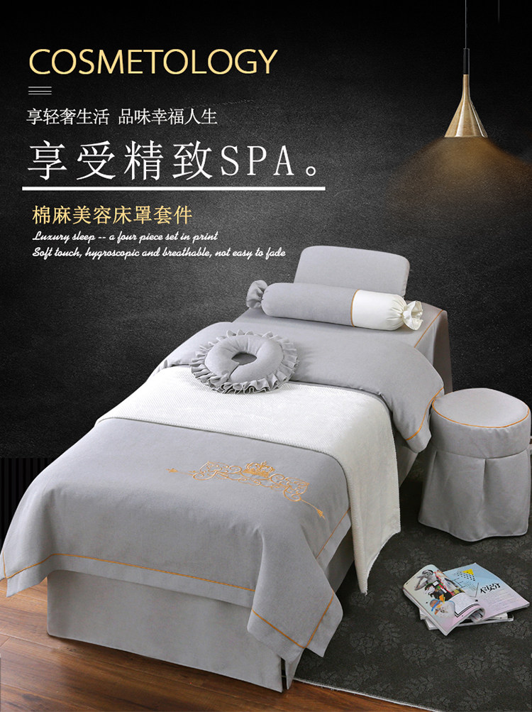 Косметическое покрывало, хлопковый комплект, косметический массажер, простыня для мытья головы, новая коллекция, 4 предмета, из хлопка и льна, простой и элегантный дизайн, увеличенная толщина, для салонов красоты