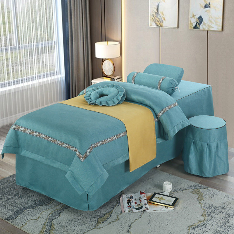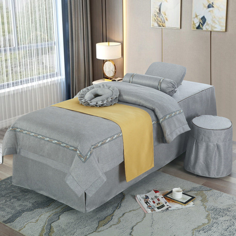 Косметическое покрывало, комплект, высококлассный массажер для мытья головы, из хлопка и льна, 4 предмета, простой и элегантный дизайн, европейский стиль, с печатью вашего логотипа