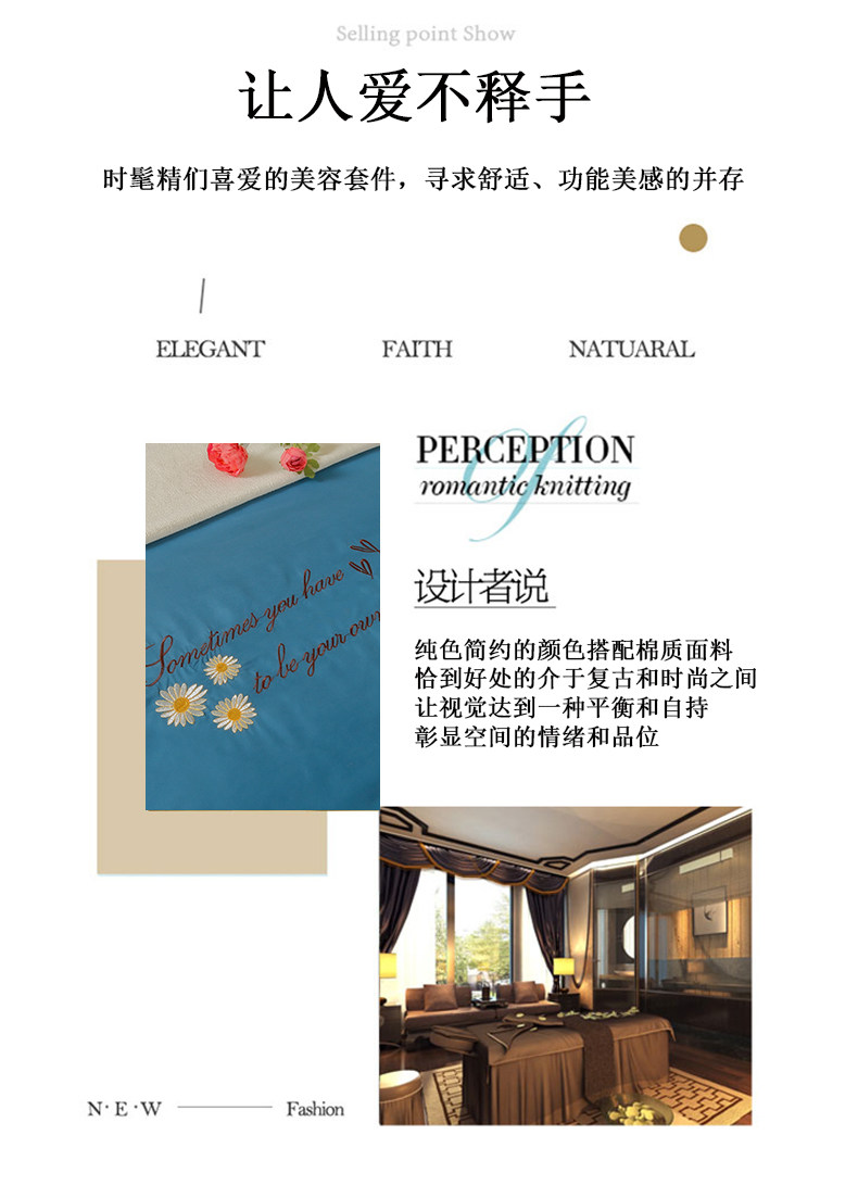 Косметическое покрывало, хлопковый высококлассный комплект, косметический массажер, 4 предмета, легкий роскошный стиль, европейский стиль, для салонов красоты, увеличенная толщина