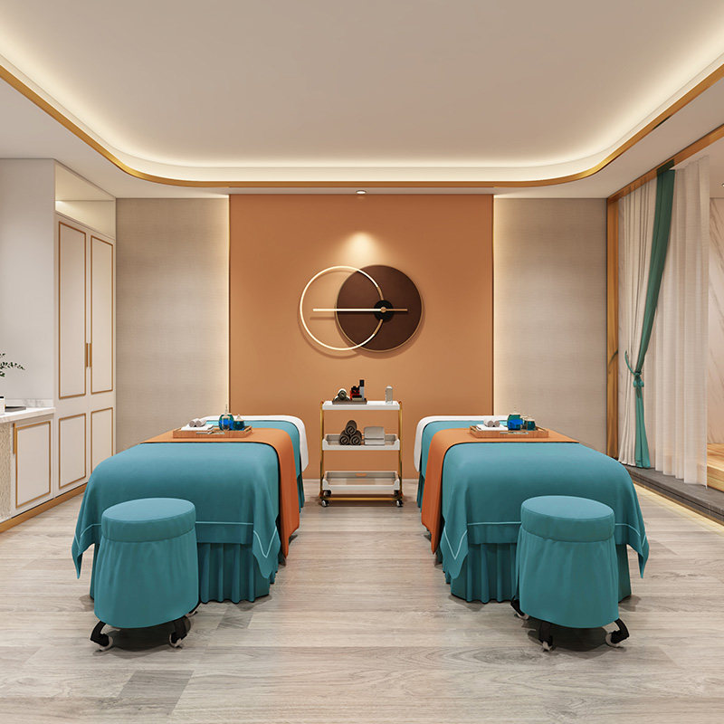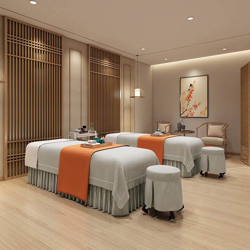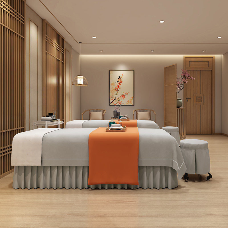Косметическое покрывало, комплект, элитный массажер, нескользящая простыня, для салонов красоты, 4 предмета, легкий роскошный стиль, делается под заказ, с печатью вашего логотипа