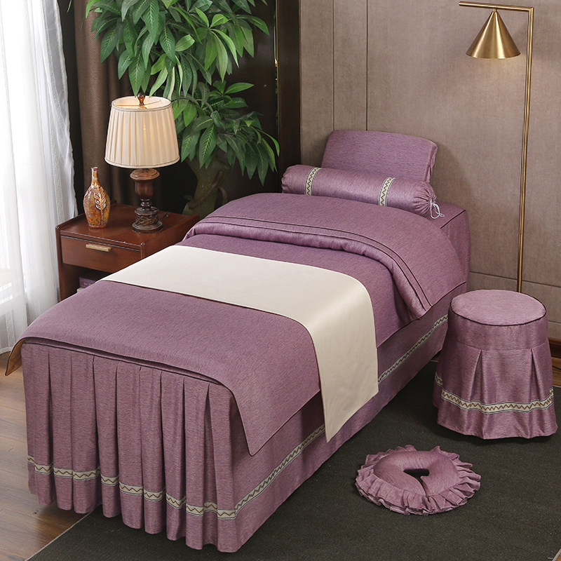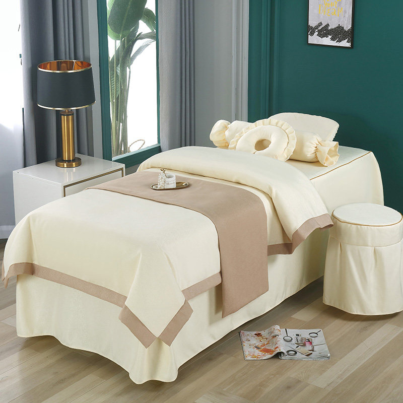 Косметическое покрывало, хлопковый комплект, элитная простыня, косметический массажер, 4 предмета, из хлопка и льна, легкий роскошный стиль, для салонов красоты