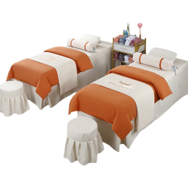 Высококлассное косметическое покрывало, комплект, косметический массажер для мытья головы, из хлопка и льна, для салонов красоты, 4 предмета, с услугой печати логотипа