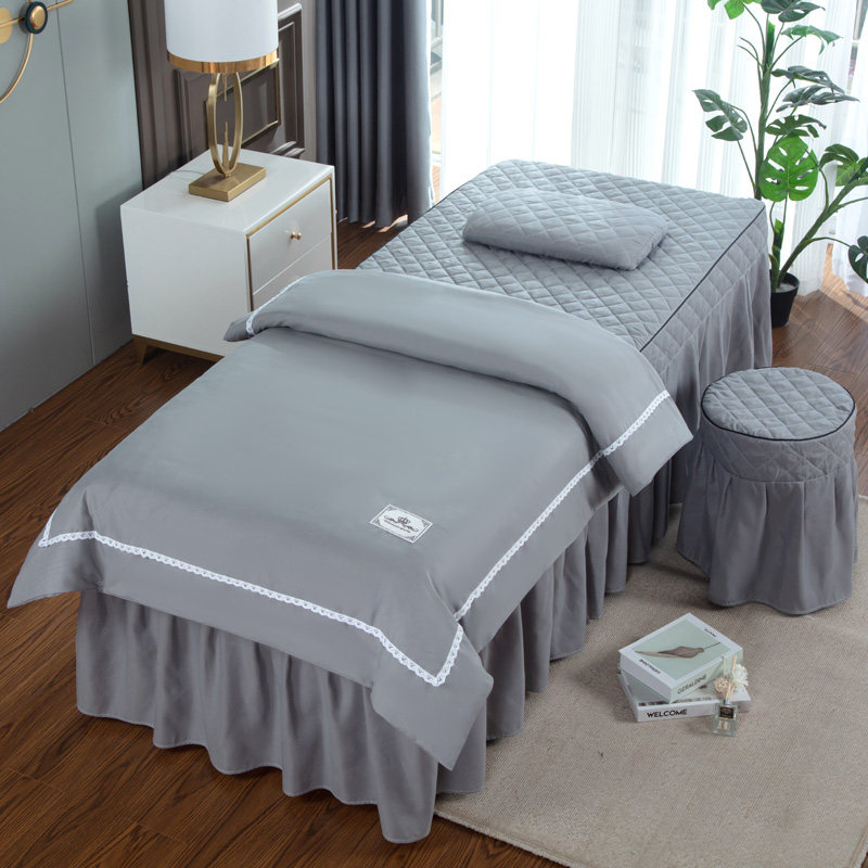Косметическое покрывало, хлопковый элитный комплект, косметический массажер для мытья головы, 4 предмета, легкий роскошный стиль, с вышивкой, для салонов красоты