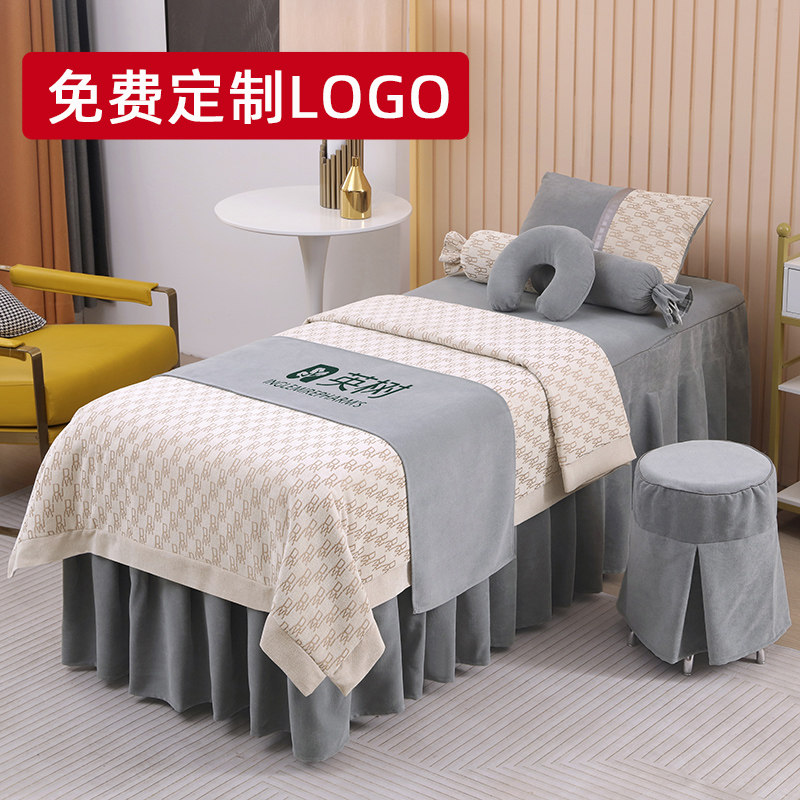 Высококлассное косметическое покрывало, элитный комплект, массажер, для салонов красоты, 4 предмета, легкий роскошный стиль, делается под заказ, с печатью вашего логотипа