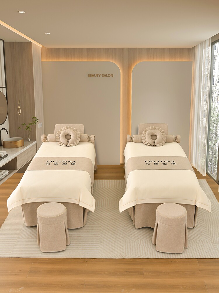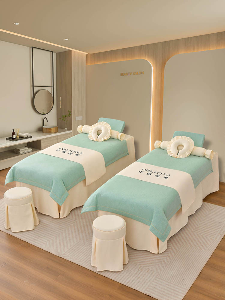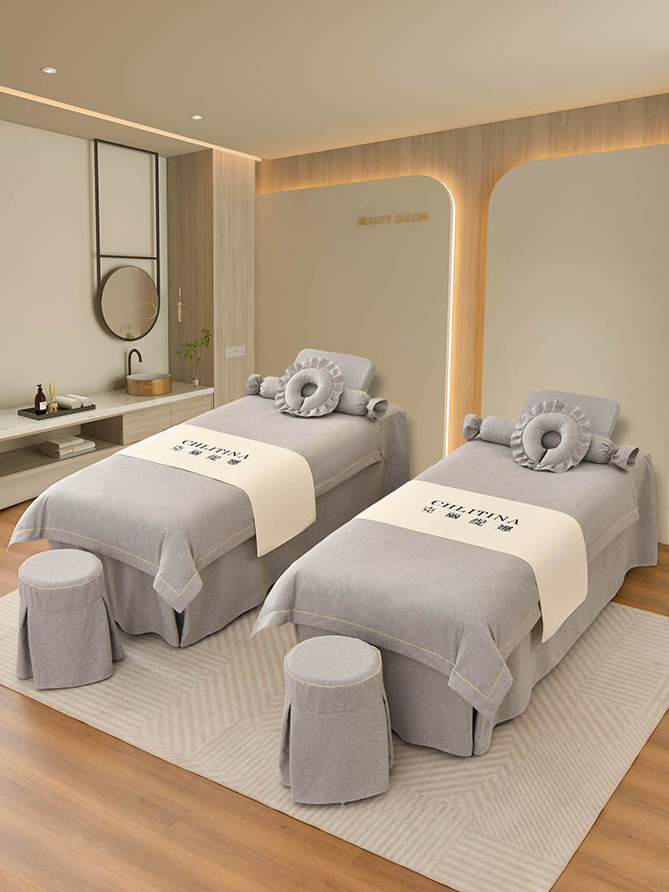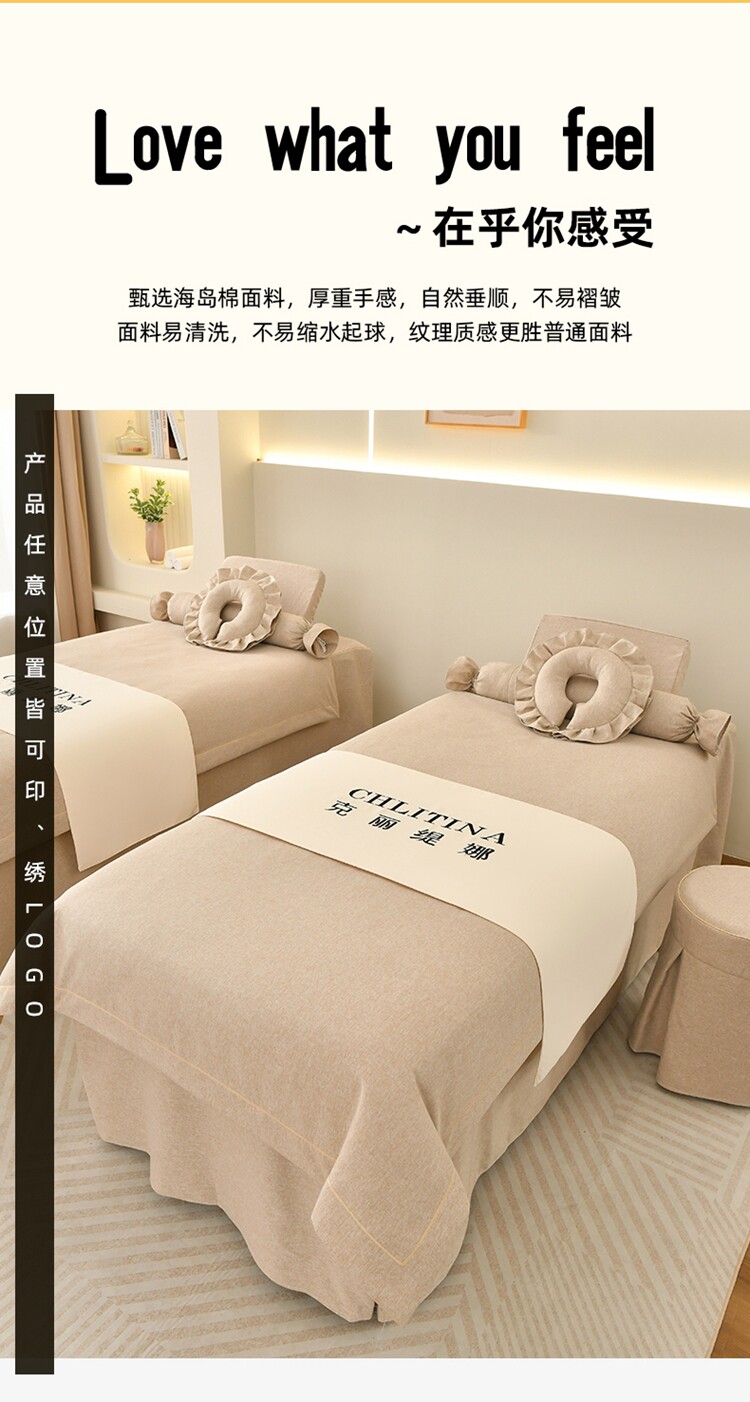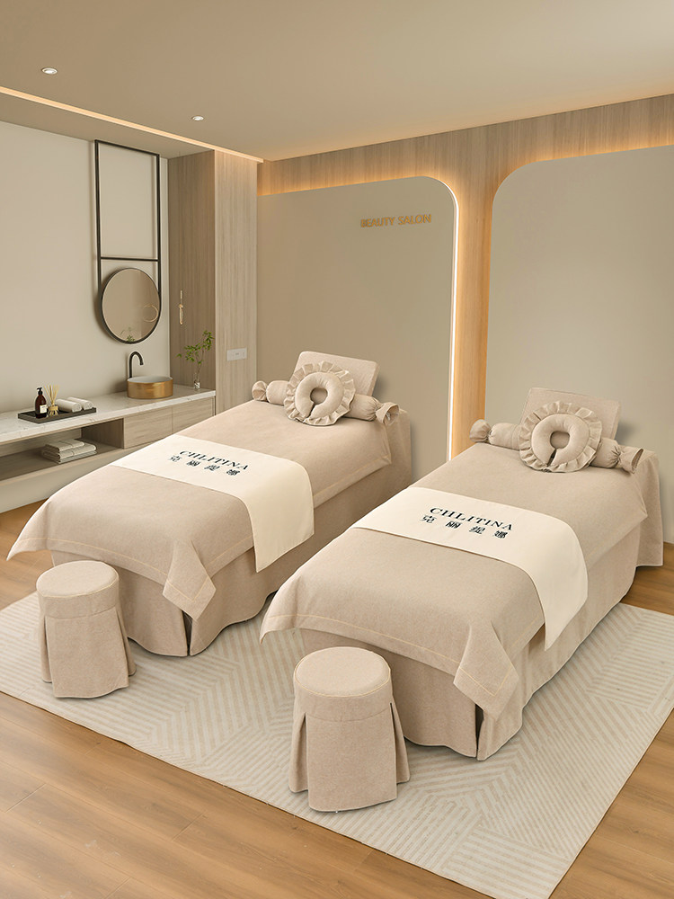 Косметическое покрывало, высококлассный хлопковый комплект, хаки массажер для ухода за кожей, 4 предмета, из хлопка и льна, простой и элегантный дизайн