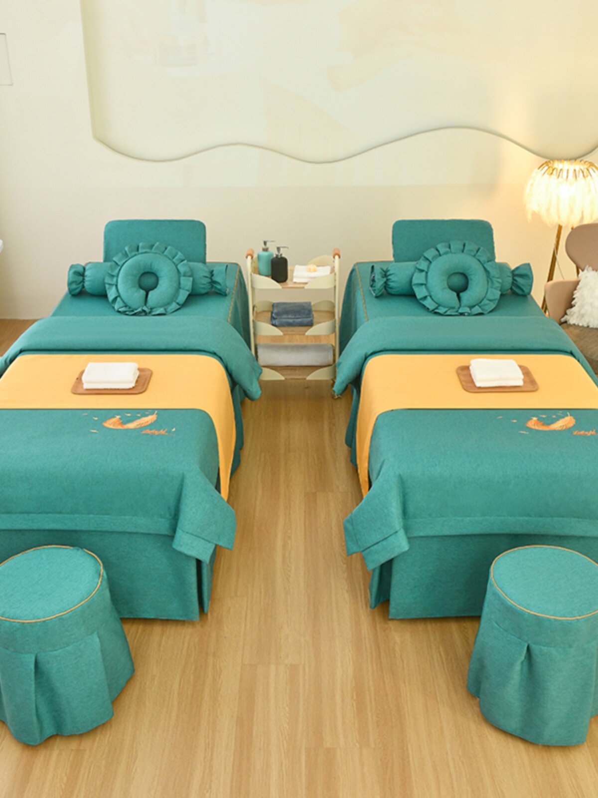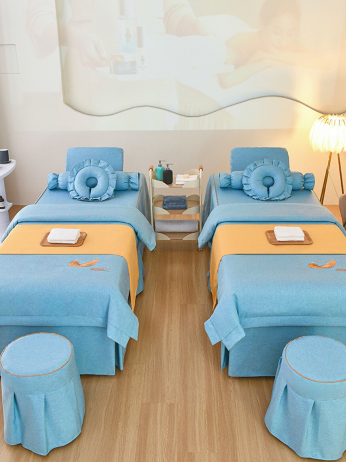 Элитное косметическое покрывало, демисезонный комплект, косметический массажер, 4 предмета, увеличенная толщина, из хлопка и льна, для салонов красоты
