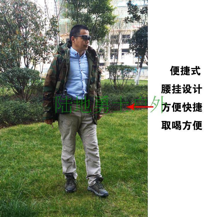 Многофункциональный дизайн, 600D военная водонепроницаемая термосонная нейлоновая куртка+алюминиевый чайник+ремешок.Один из них достаточно для путешествий на открытом воздухе и кемпинга.Это может быть легко носить с собой ремень или его можно повесить на открытом мешке.