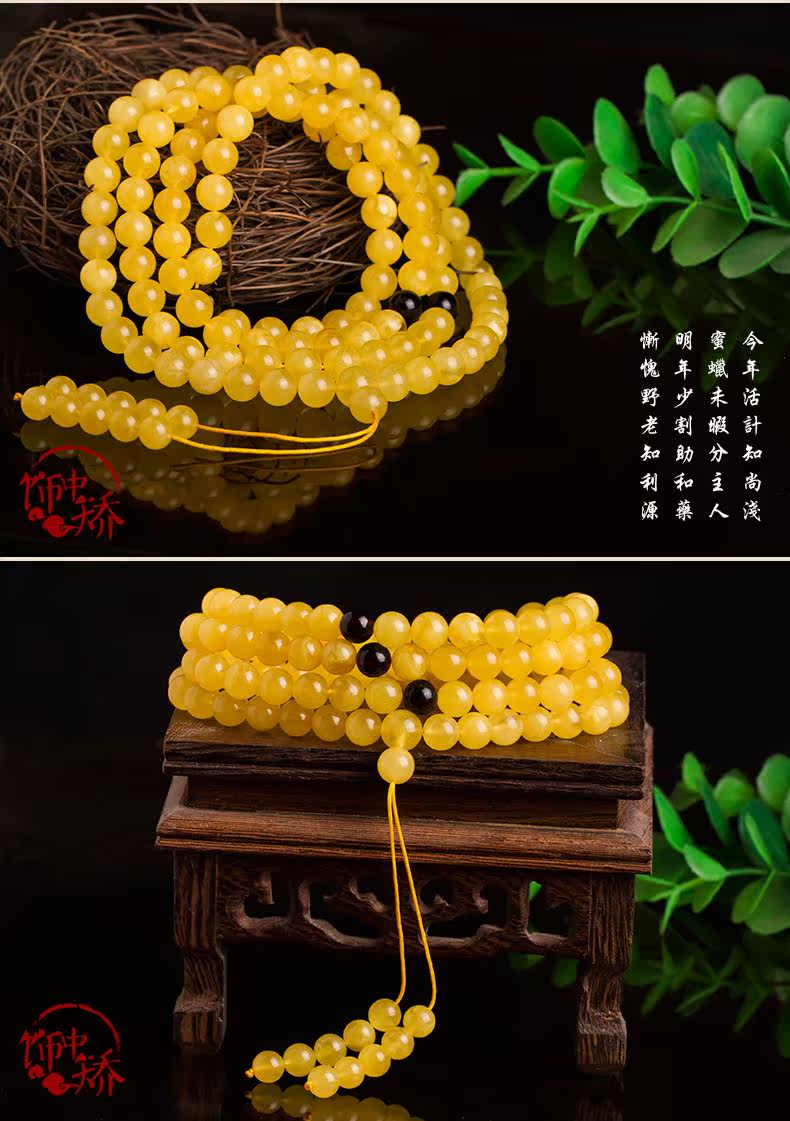 饰中矫 Натуральная природная руда из воскового агата, оригинальный браслет подходит для мужчин и женщин, 108 бусин, женский стиль