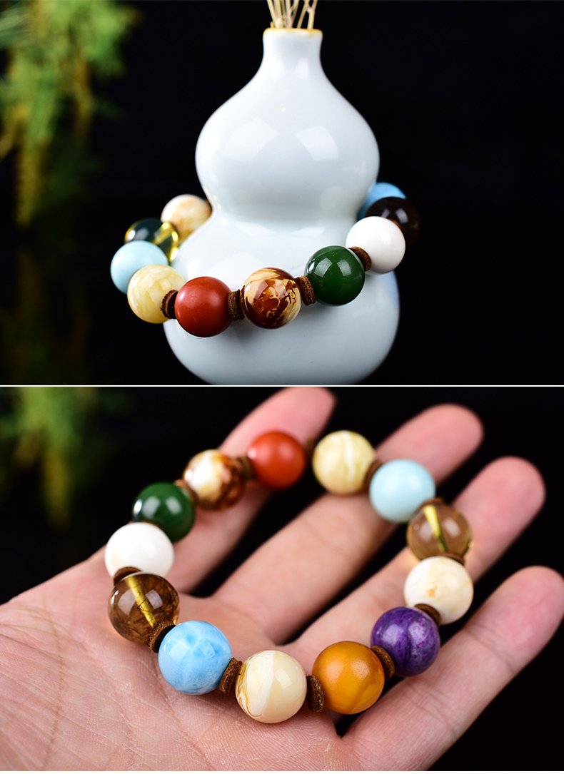 Янтарный бирюзовый браслет из воскового агата, четки из круглых бусин