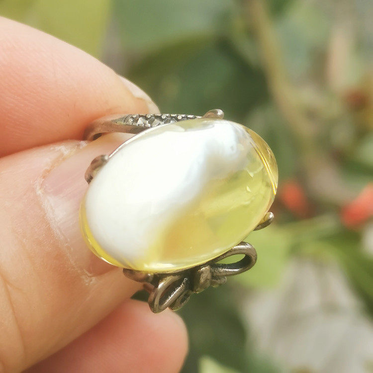 Золотая инкрустация камня из воскового агата, кольцо, серебро 925 пробы