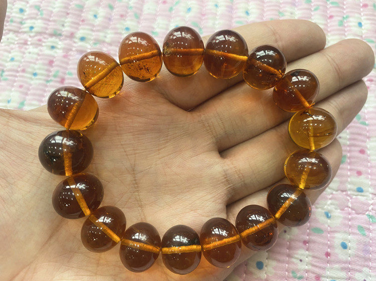 Фальшивый один -размещение десять чистых натуральных янтарных янтарных 15 -мм мужского браслета