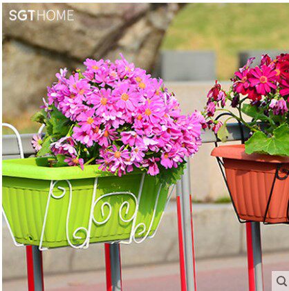 Цветочный горшок подвесной стойка железа -сбоя на балконах стена Терраса -Прямоугольная цветочная стойка с разведением цветов. Простая железная артериальная полка