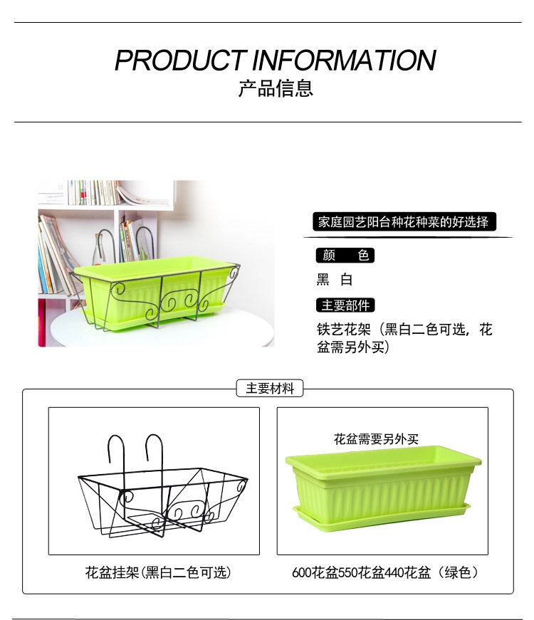 Наша балкона подвесная рама адаптирована к продукту в соответствии с нашей фабрикой Flower Pot Foreign Trade.Цветочный горшок идеально оснащен полкой, и при наклонении не будет никакого дрожания.Это не конец завода, которую они продают.