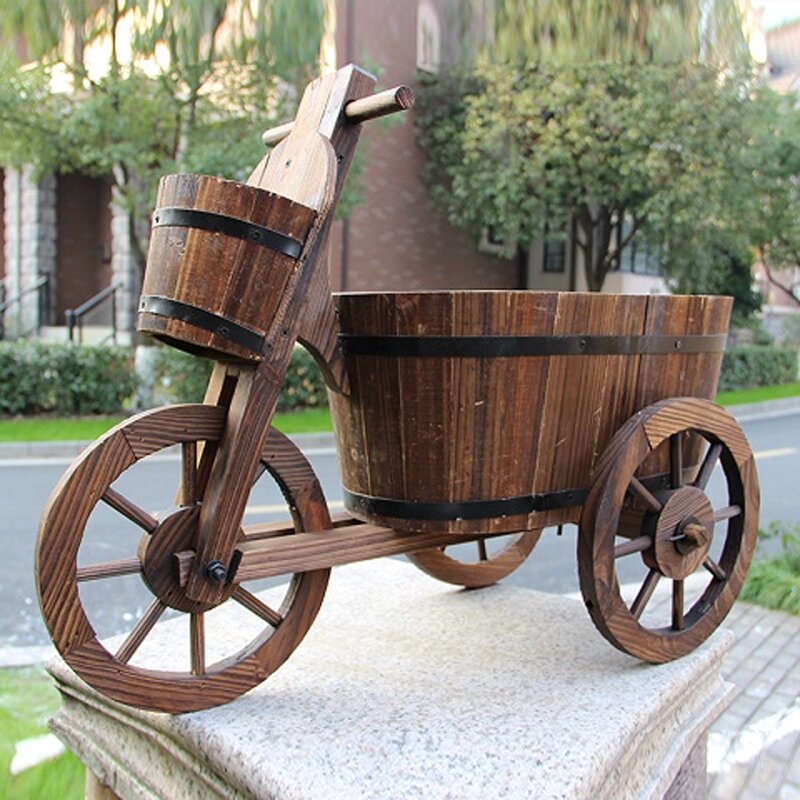Деревянный цветочный горшок в форме цветка, декоративные цветы, колесо, защита транспорта, декор для балкона