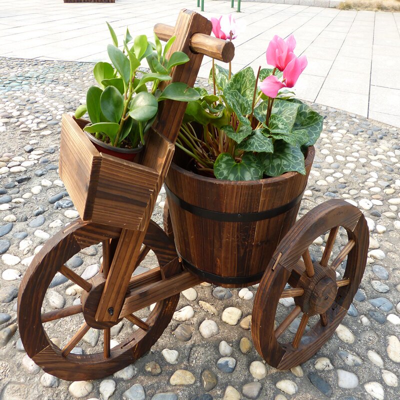 Карбонизированный антикоррозивный деревянный цветочный автомобиль имеет корзину из трех -военнолета с четырьмя шпонами для ландшафтного цветочного цветочного цветочного цветочного цветочного цвета.
