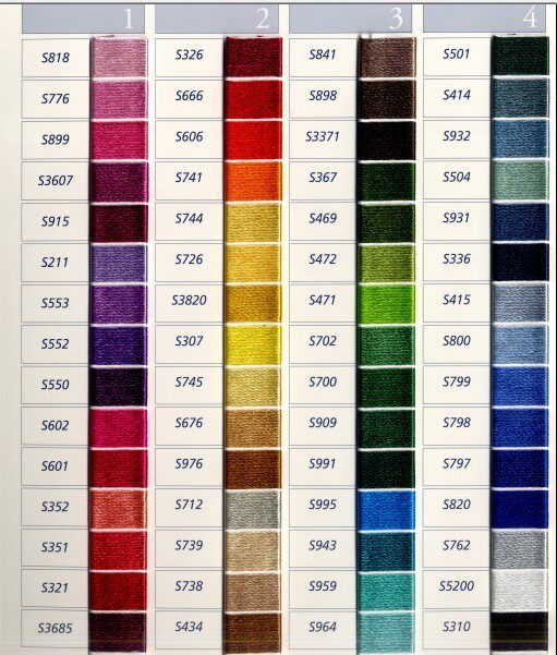 Яркая шелковая нить не исчезает,Есть 60 цветовДоступно, согласно численной системе такой же, как и искусственная шелковая линия (то есть искусственный шелковый цвет № 30880 является ярким шелковым S800).