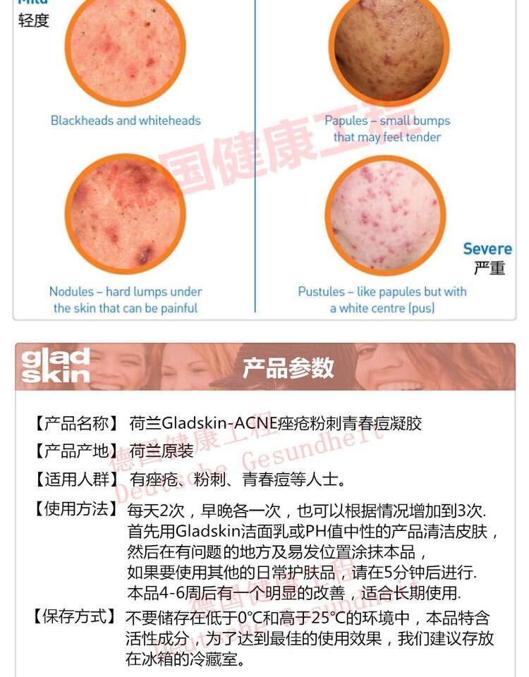 Гладскин-Акне Акне Гель активного ухода на голландском языке, снимает прыщи, прыщи, прыщи