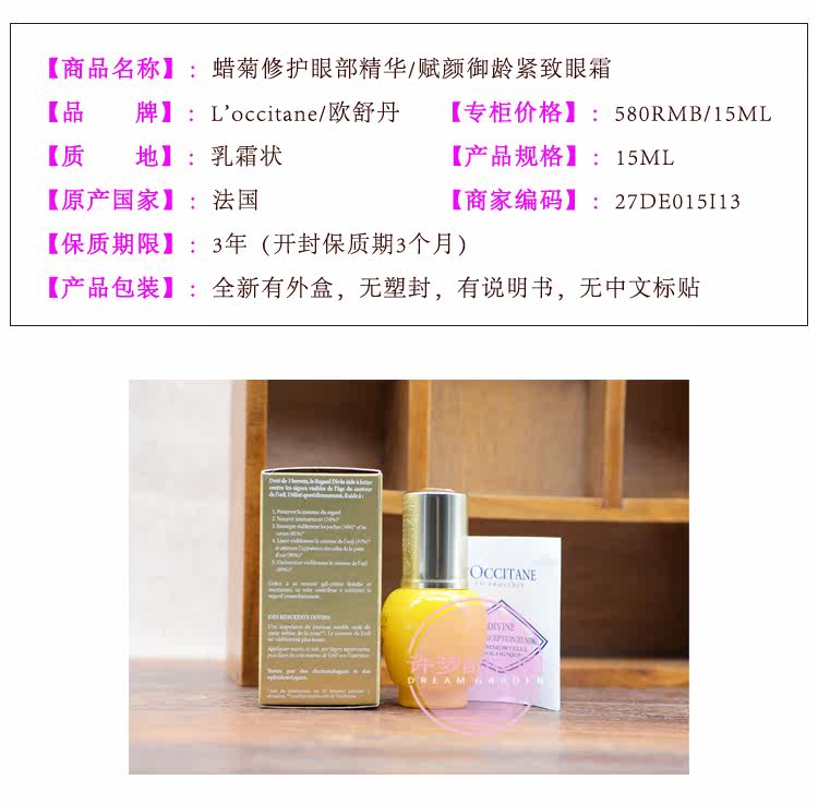 L'occitane, восстанавливающая эссенция, разглаживающий крем для глаз, (в наличии на складе), 15 мл