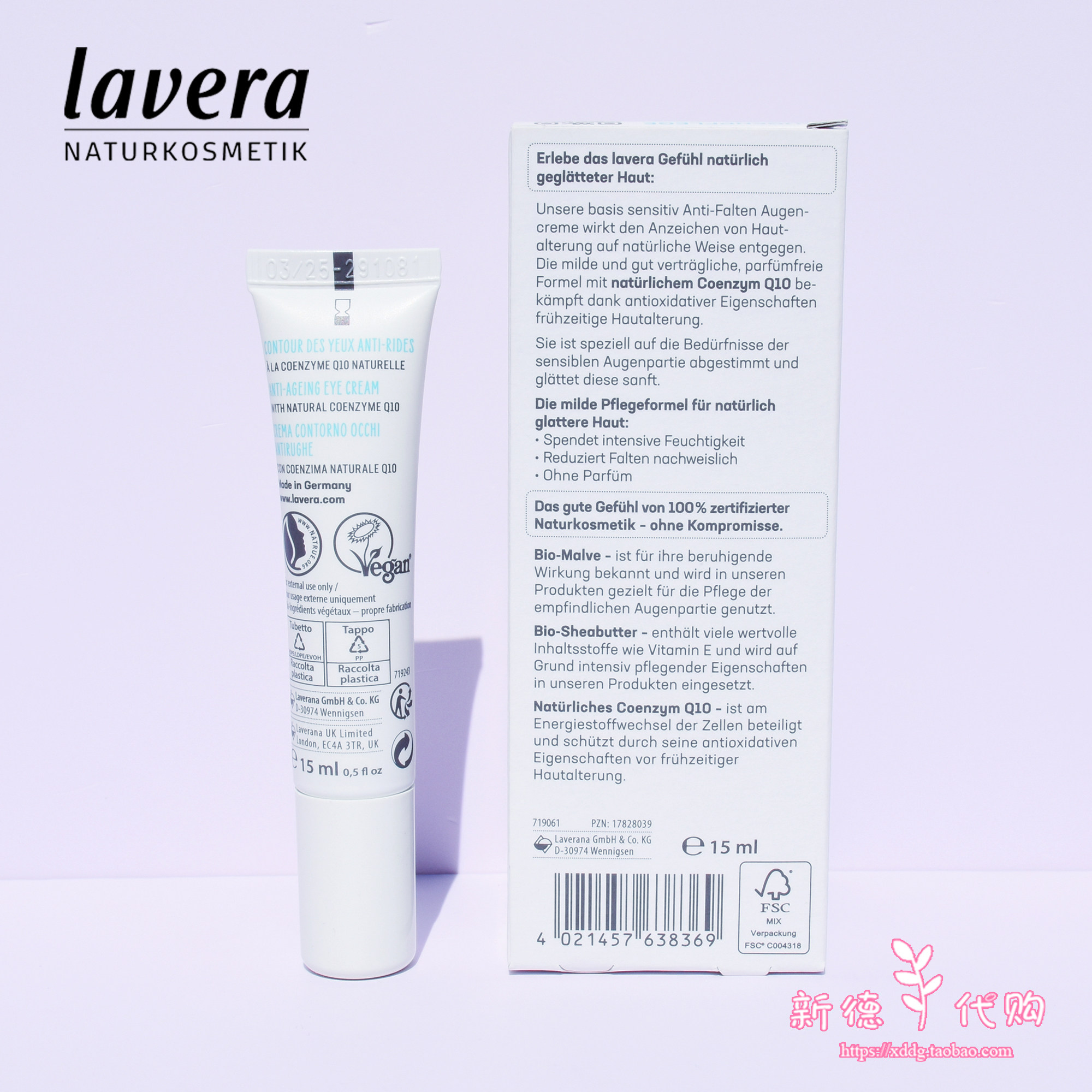 Натуральный увлажняющий разглаживающий крем для глаз, (в наличии на складе), Германия, против морщин, 15 мл