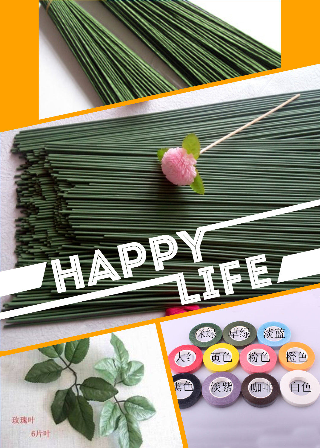 Материал розового материала ручной работы/цветочный полюс/цветочные ветви/зеленый железный проволока/резиновая проволочная пакет с ткани бумага для бумаги цветочный стержень Бесплатная доставка