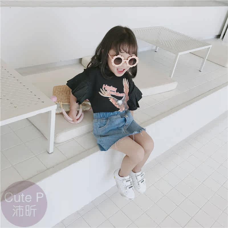 Летняя свежая модная детская джинсовая юбка, мини-юбка, с акцентом на бедрах