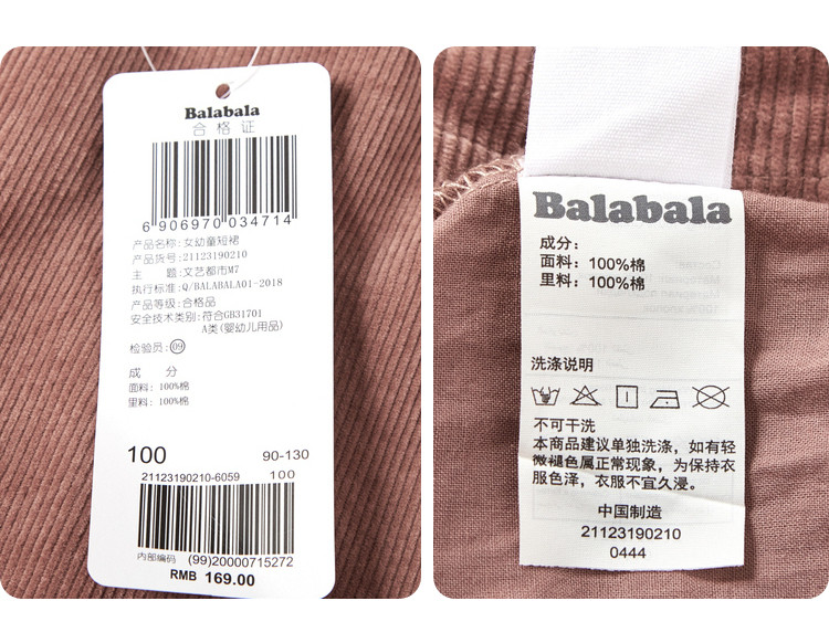 巴拉巴拉 Осенняя детская вельветовая юбка, детская одежда, в западном стиле