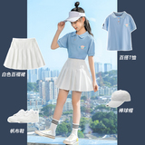 Юбка на девочку, юбка в складку, комплект, летняя мини-юбка для школьников и студентов, летняя одежда, подходит для подростков