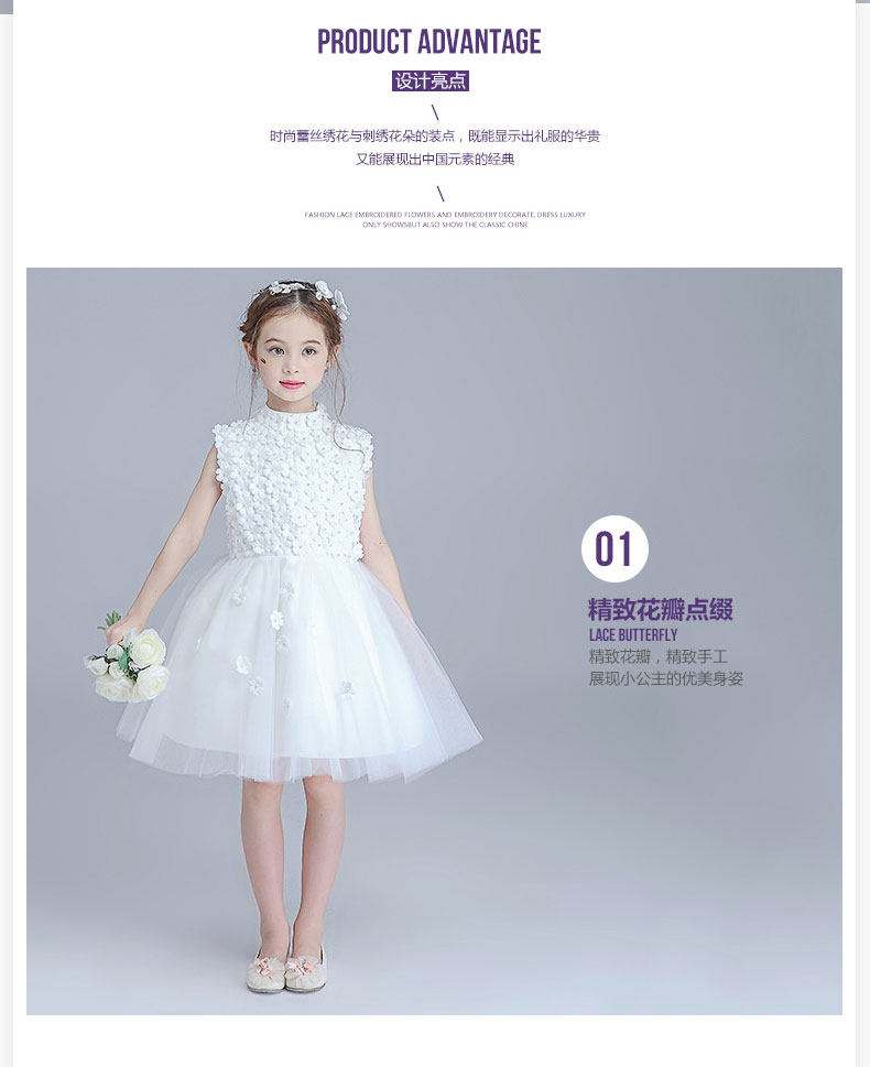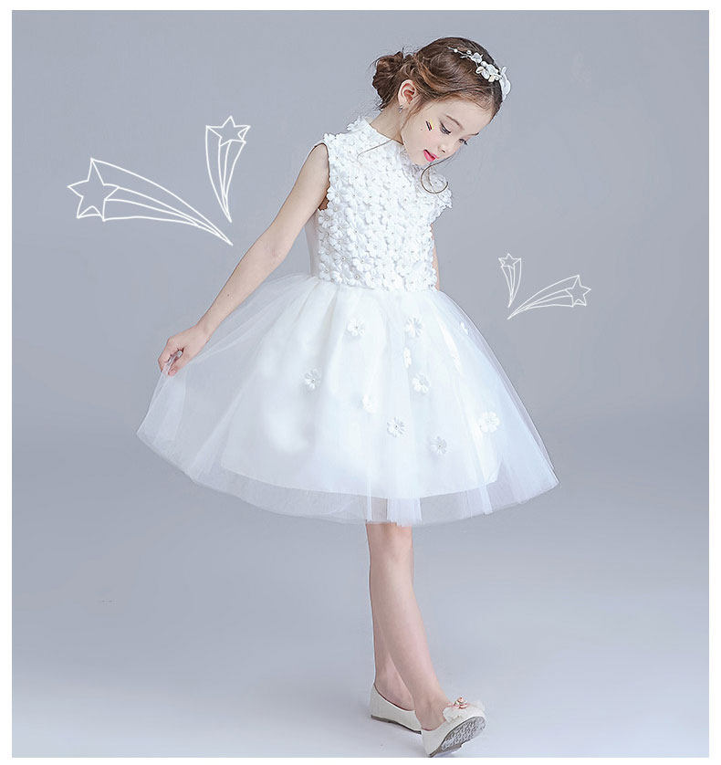 丽兰朵 Наряд маленькой принцессы, платье девочки цветочницы, свадебное платье, детское пианино, наряд для музыкальных выступлений, белый костюм, из фатина, подходит для подростков