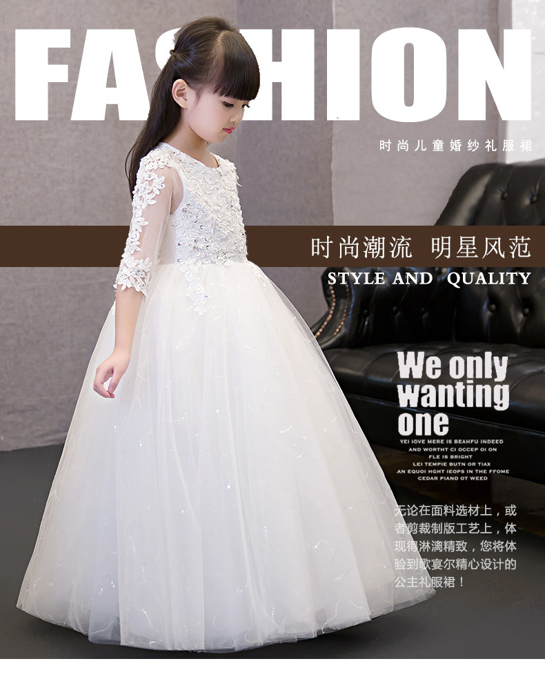 Детский наряд маленькой принцессы, свадебное платье, наряд для музыкальных выступлений, благородный крой, в западном стиле