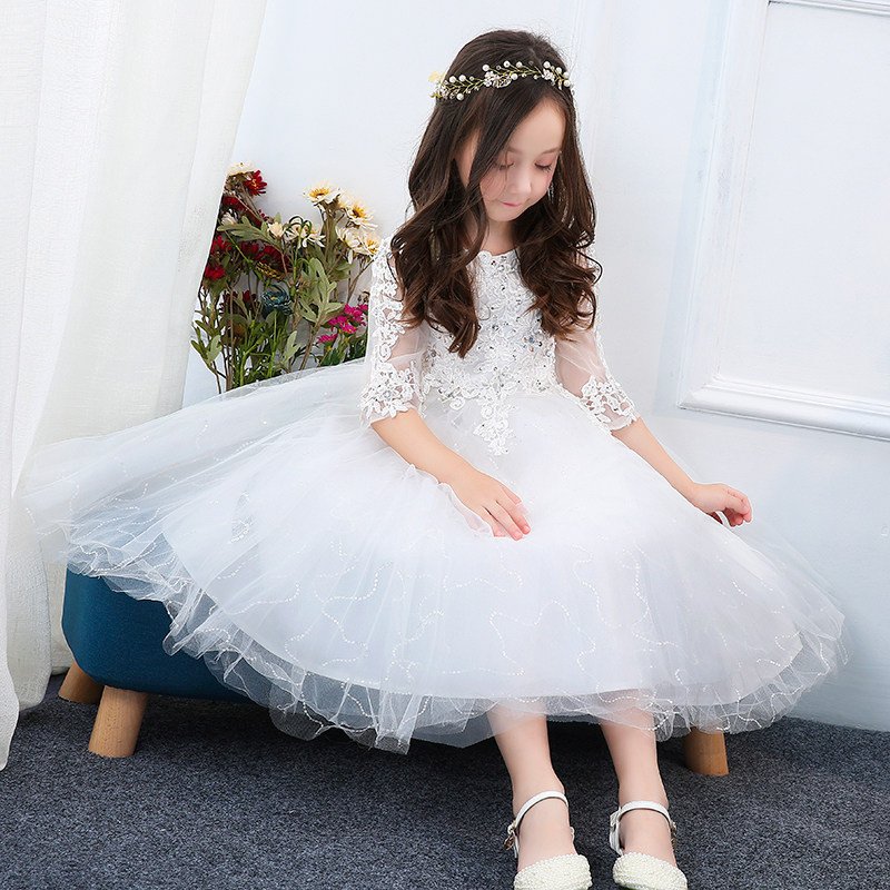 Белый наряд маленькой принцессы, свадебное платье, вечернее платье, пианино, подарок на день рождения
