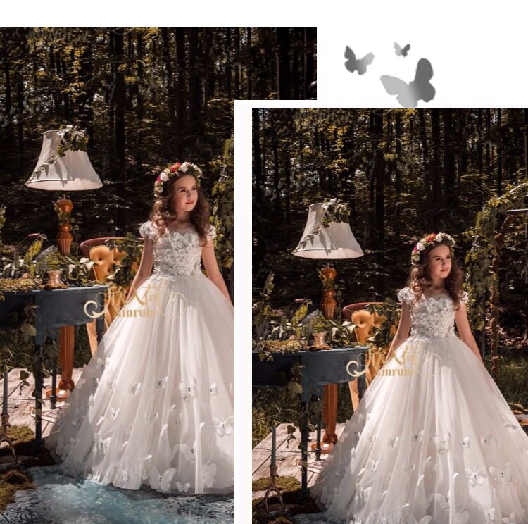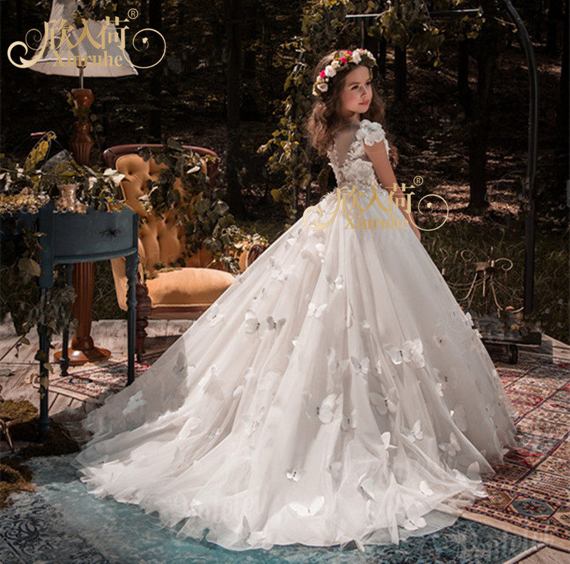 Белый длинный наряд маленькой принцессы, вечернее платье