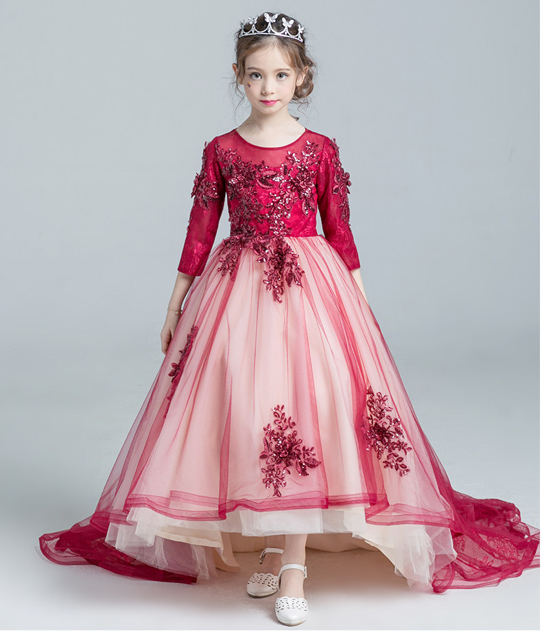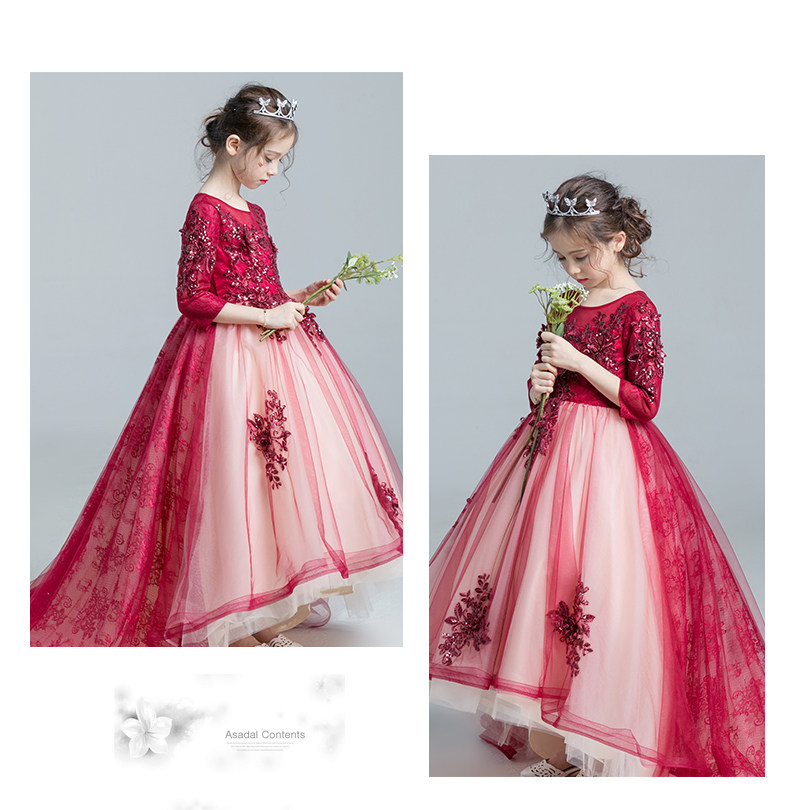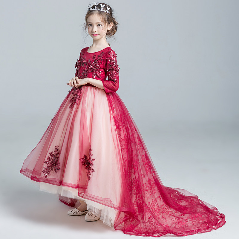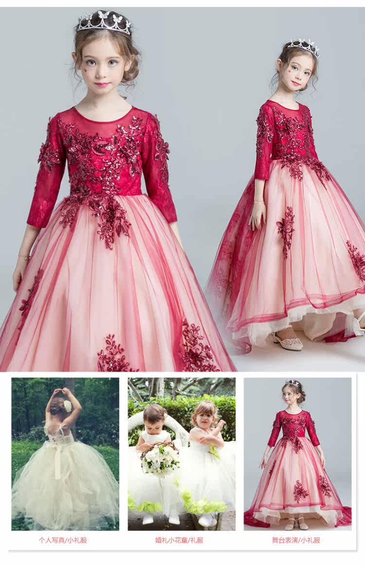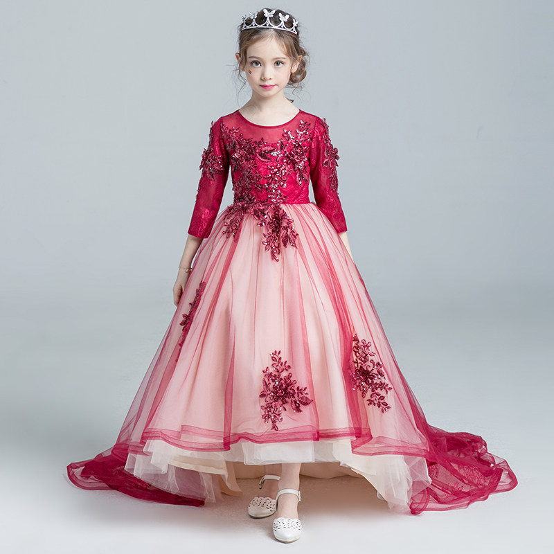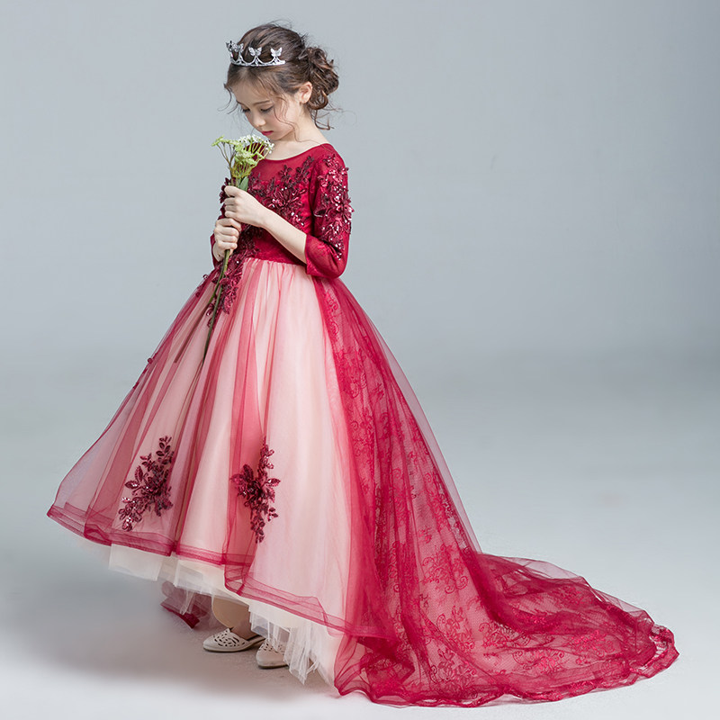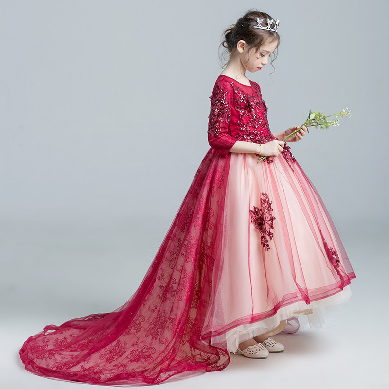 Красное платье девочки цветочницы, наряд маленькой принцессы, детское свадебное платье, костюм, вечернее платье