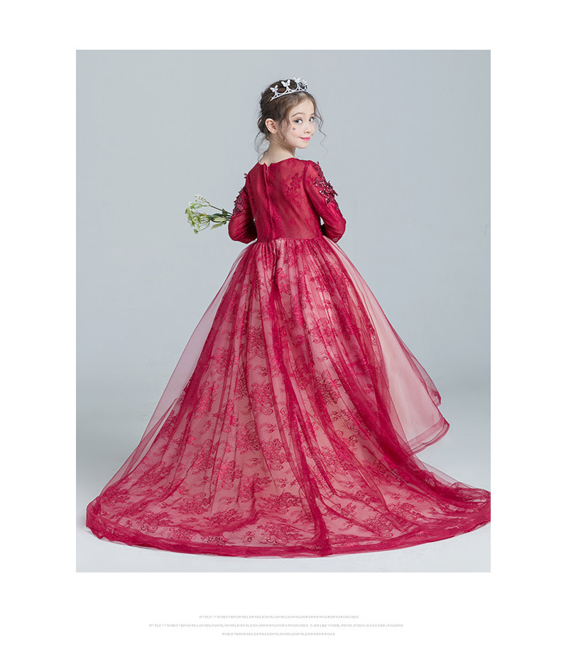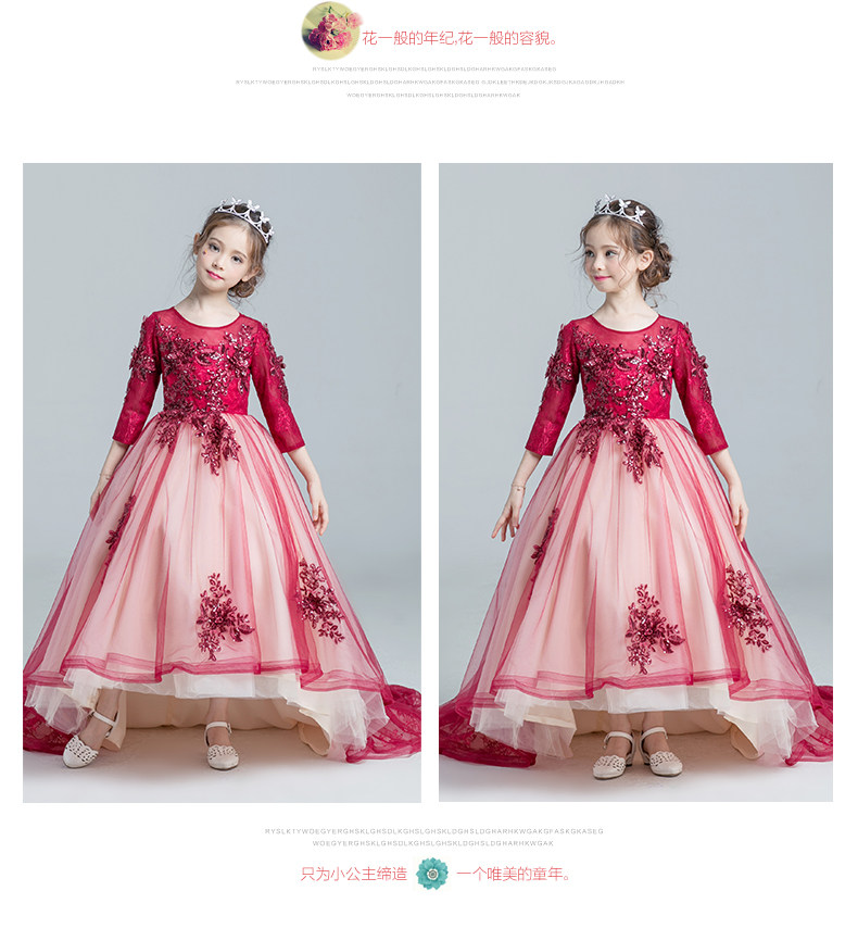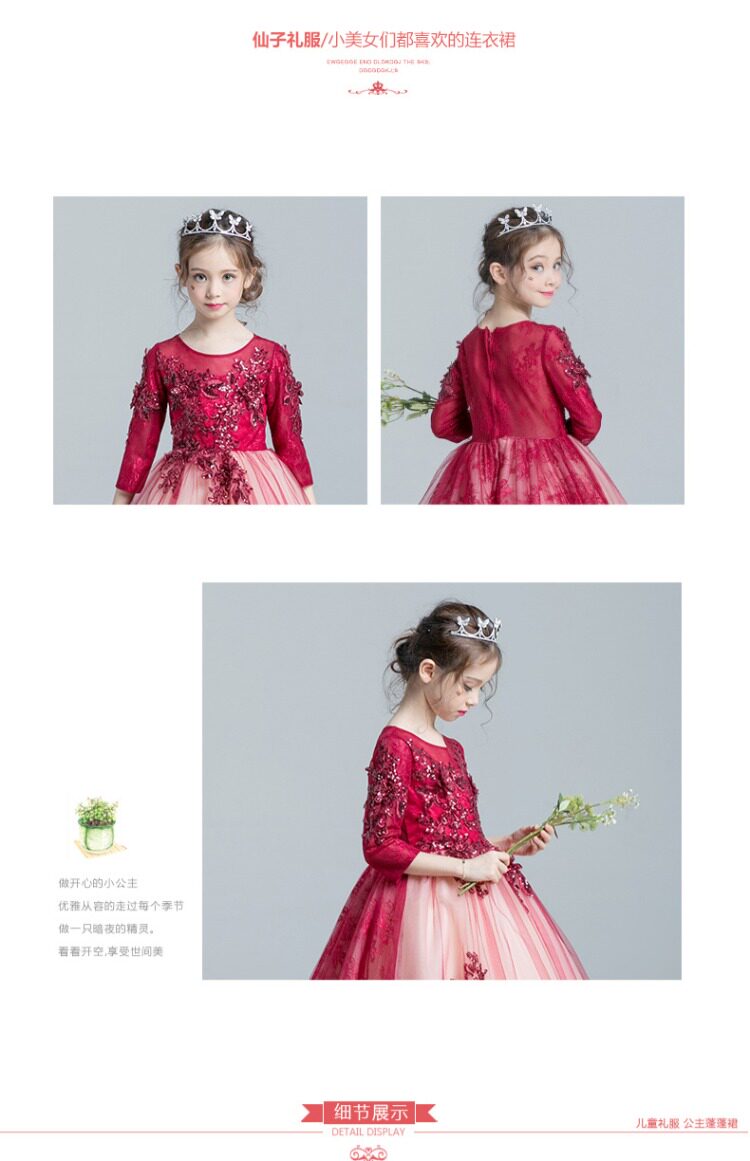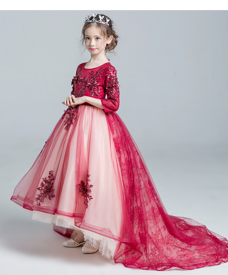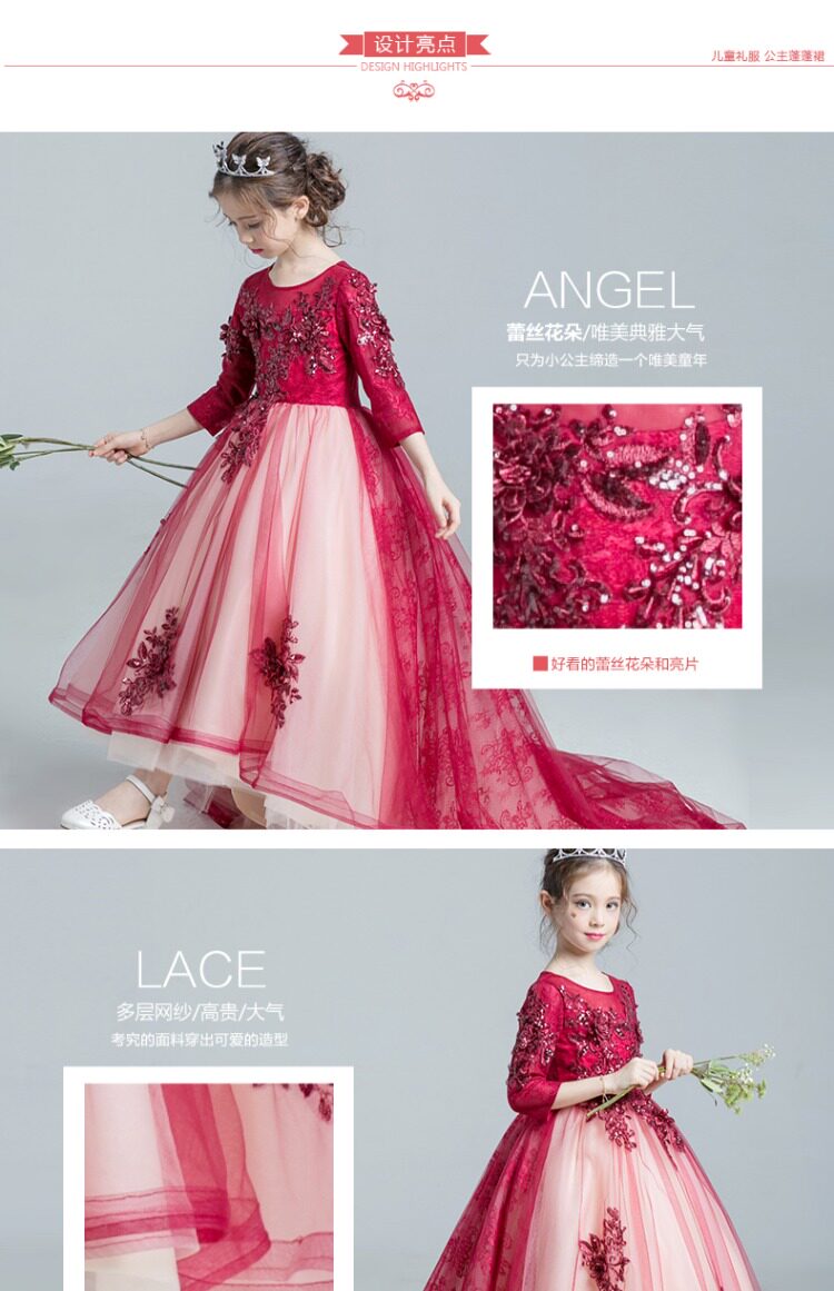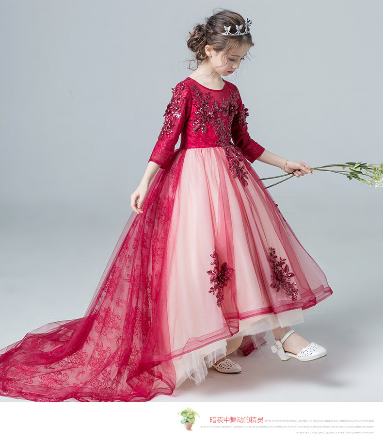 Красное платье девочки цветочницы, наряд маленькой принцессы, детское свадебное платье, костюм, вечернее платье