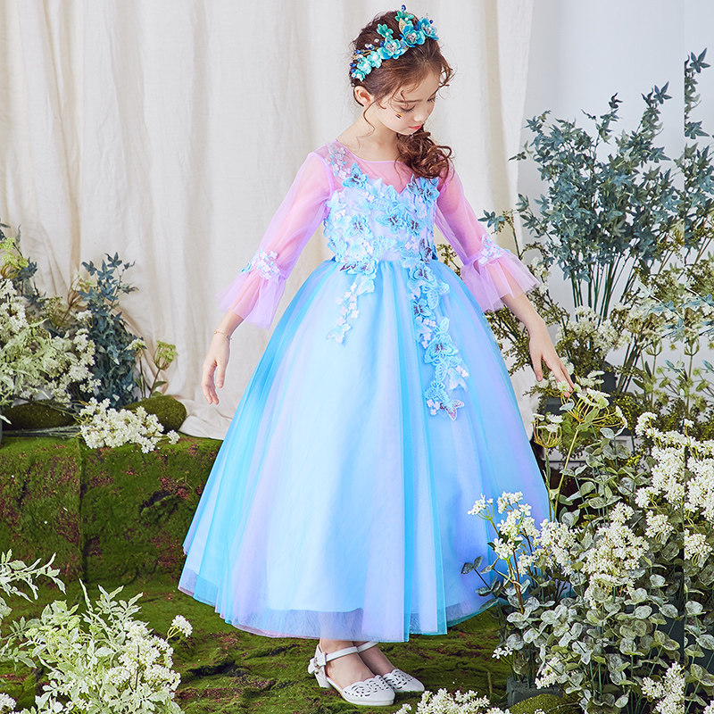 Демисезонный длинный наряд маленькой принцессы, юбка, детское демисезонное свадебное платье, лонгслив, костюм, юбка-пачка