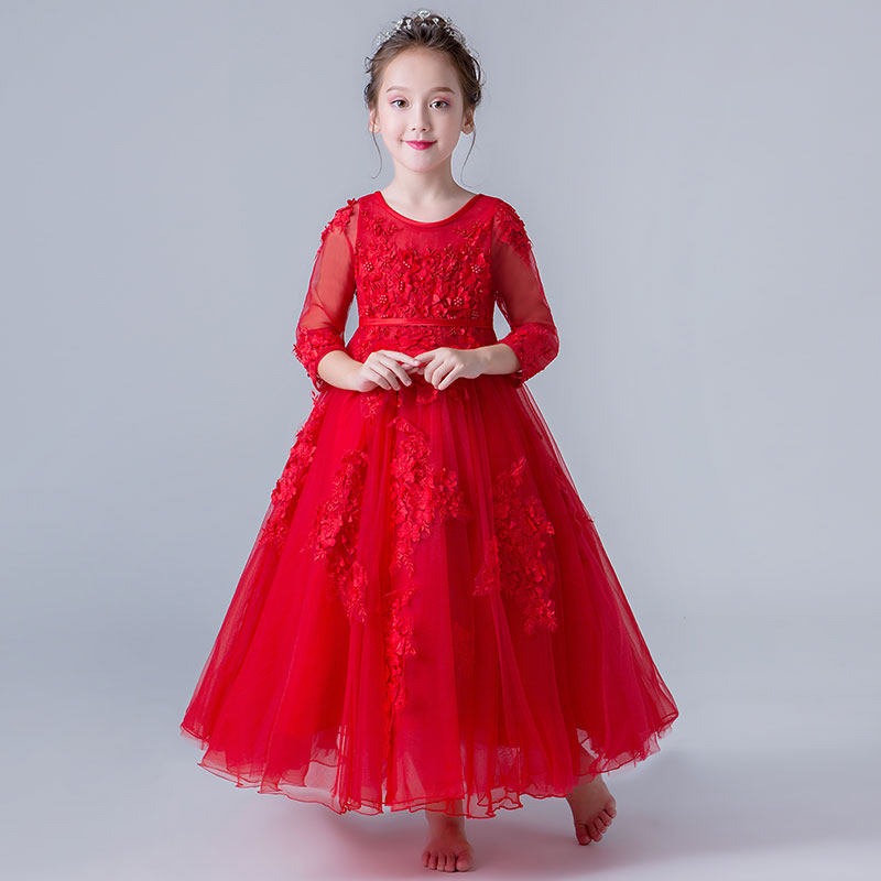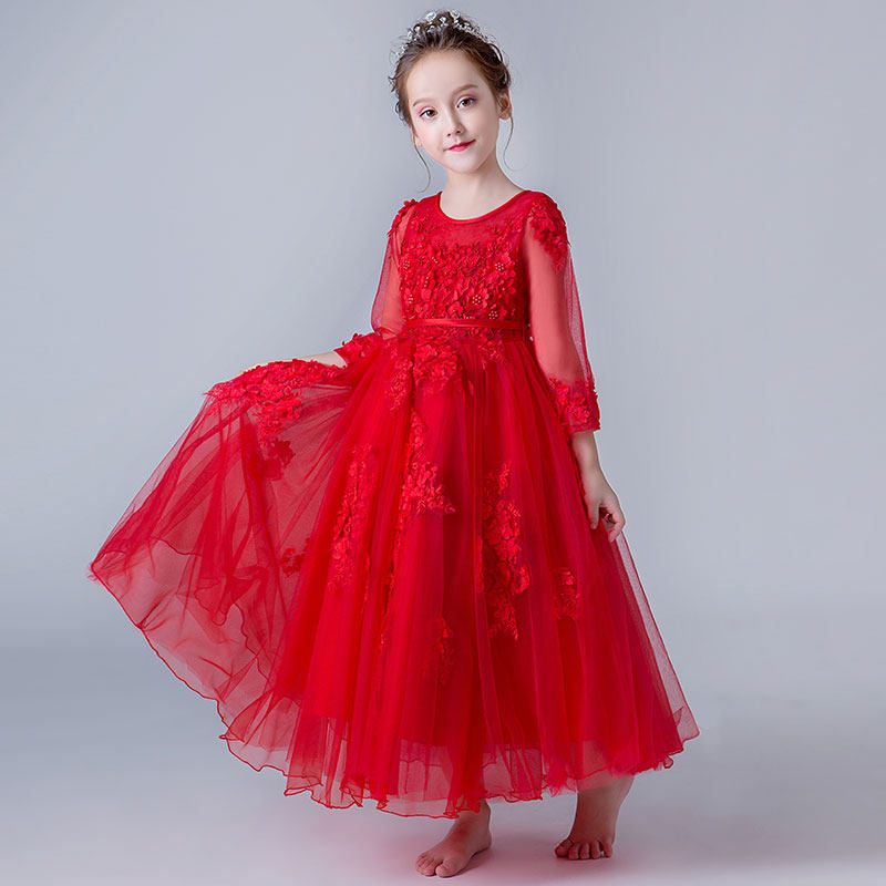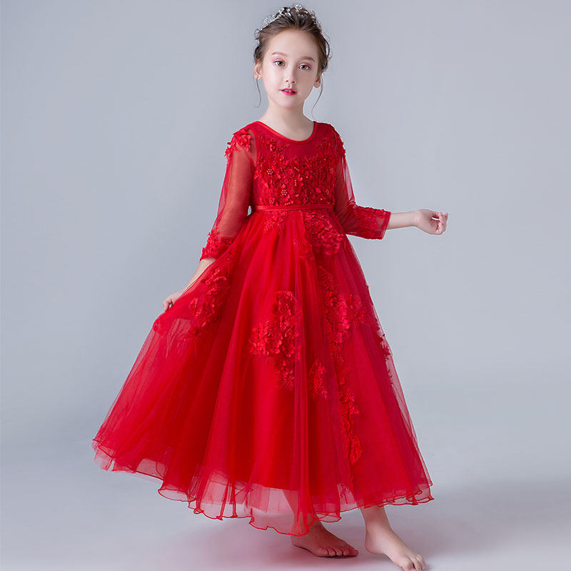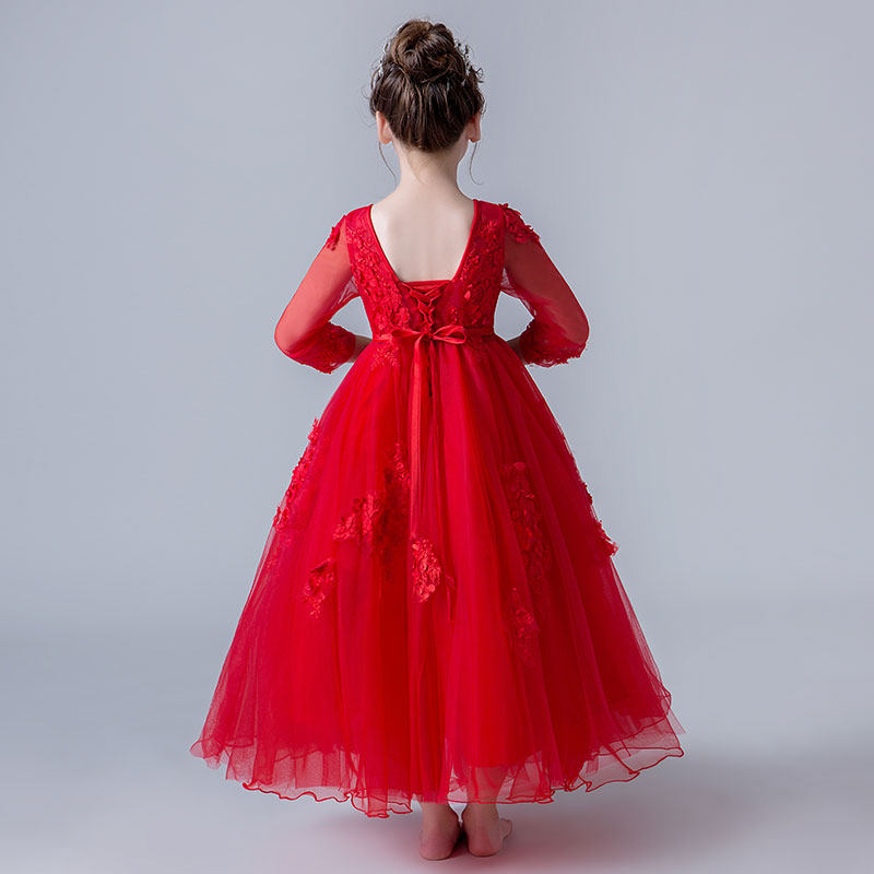 丽兰朵 Красный лонгслив, кружевной наряд маленькой принцессы, детское свадебное платье, костюм, осенний сезон