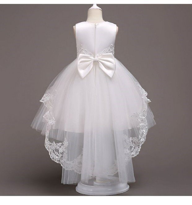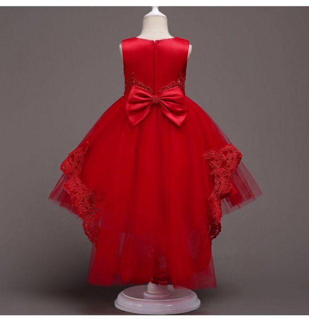 Настоящий колено без рукавов лука милое новое платье для девочки