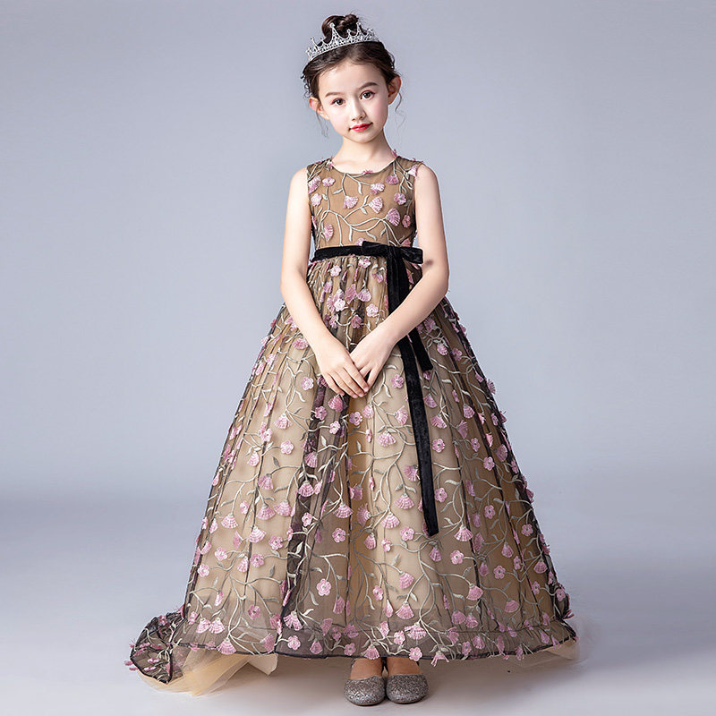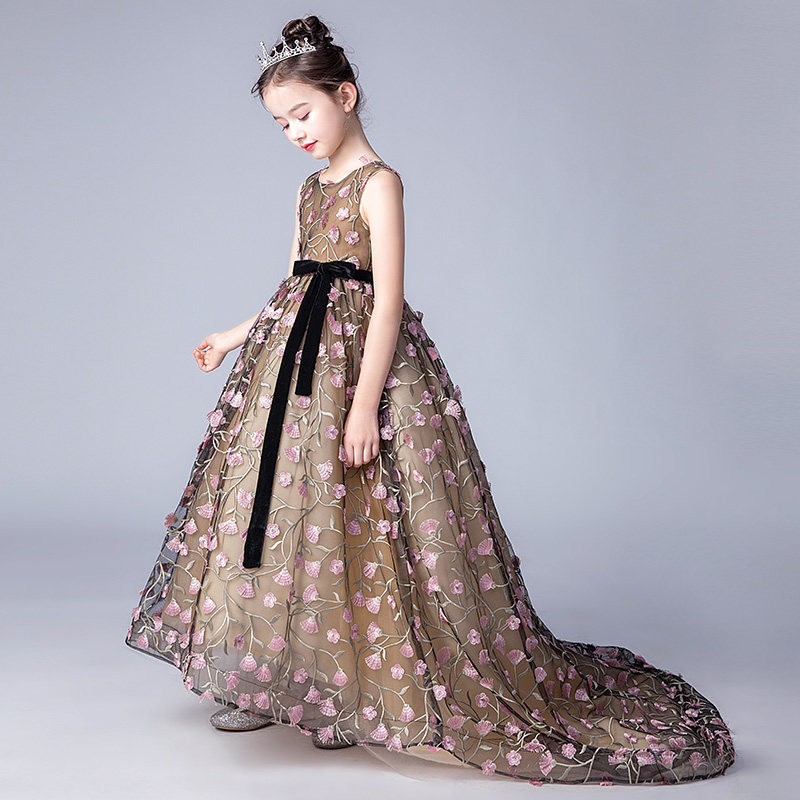 Розовое вечернее платье, наряд маленькой принцессы, костюм, свадебное платье, в цветочек, детский подиумный костюм, для подиума