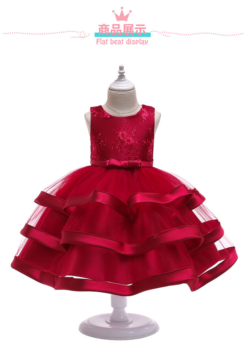 Детское вечернее платье, свадебное платье, красный наряд маленькой принцессы, в западном стиле, подходит для подростков