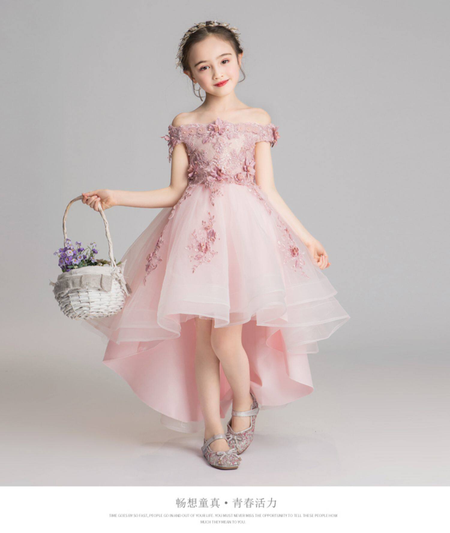 Наряд маленькой принцессы, вечернее платье, детский костюм, свадебное платье, в западном стиле, открытые плечи