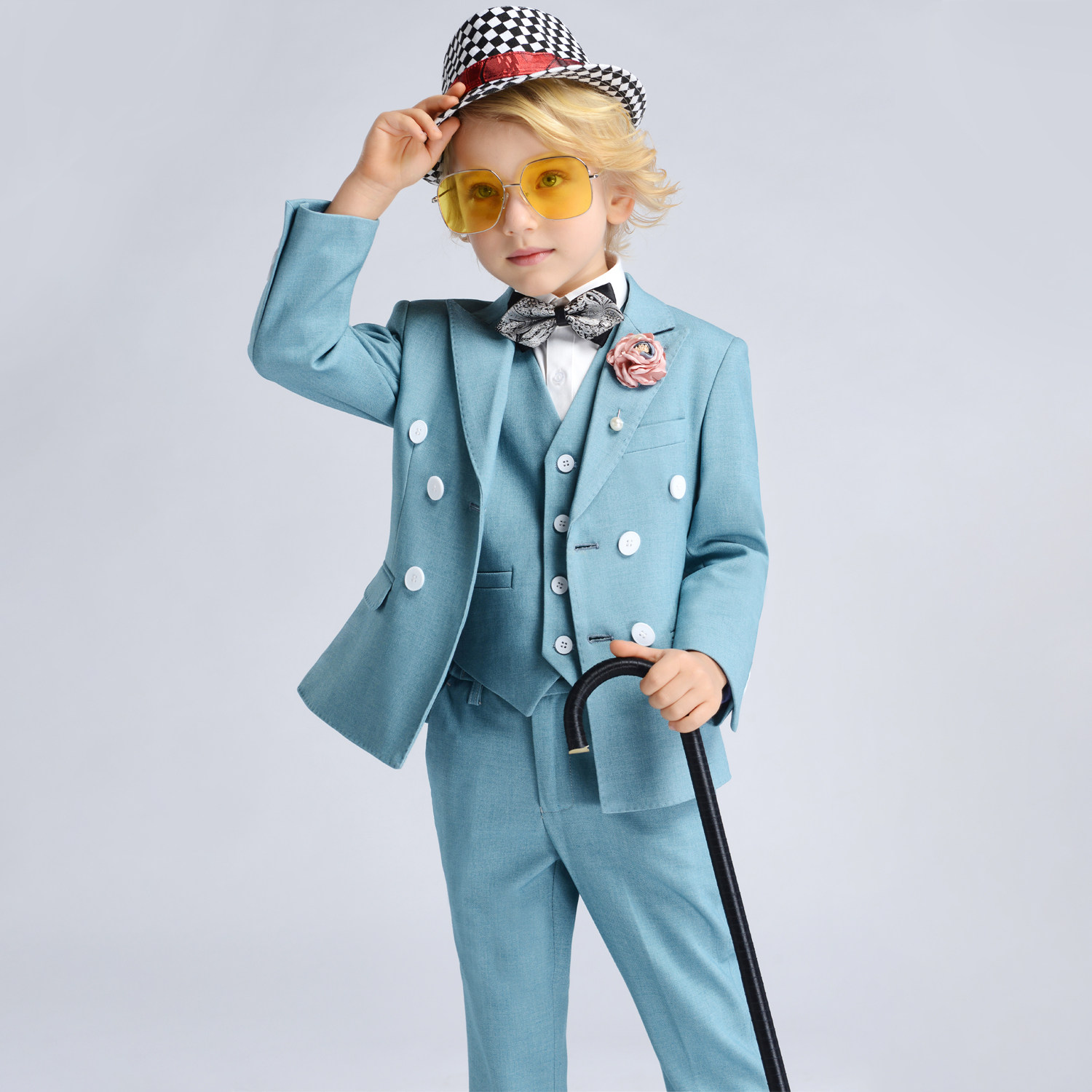 Синий детский костюм мальчика цветочника, наряд для музыкальных выступлений, подходит для подростков, для подиума, детская одежда