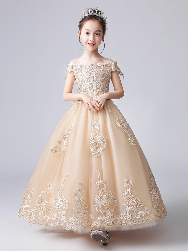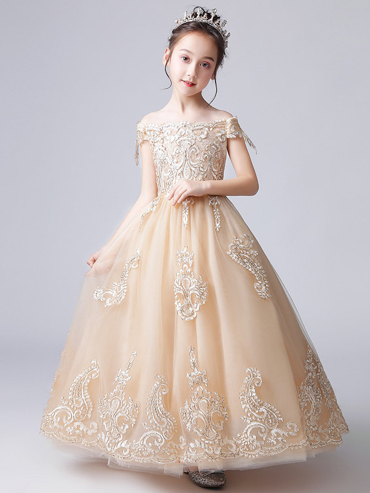 Детское платье девочки цветочницы, свадебное платье, открытые плечи