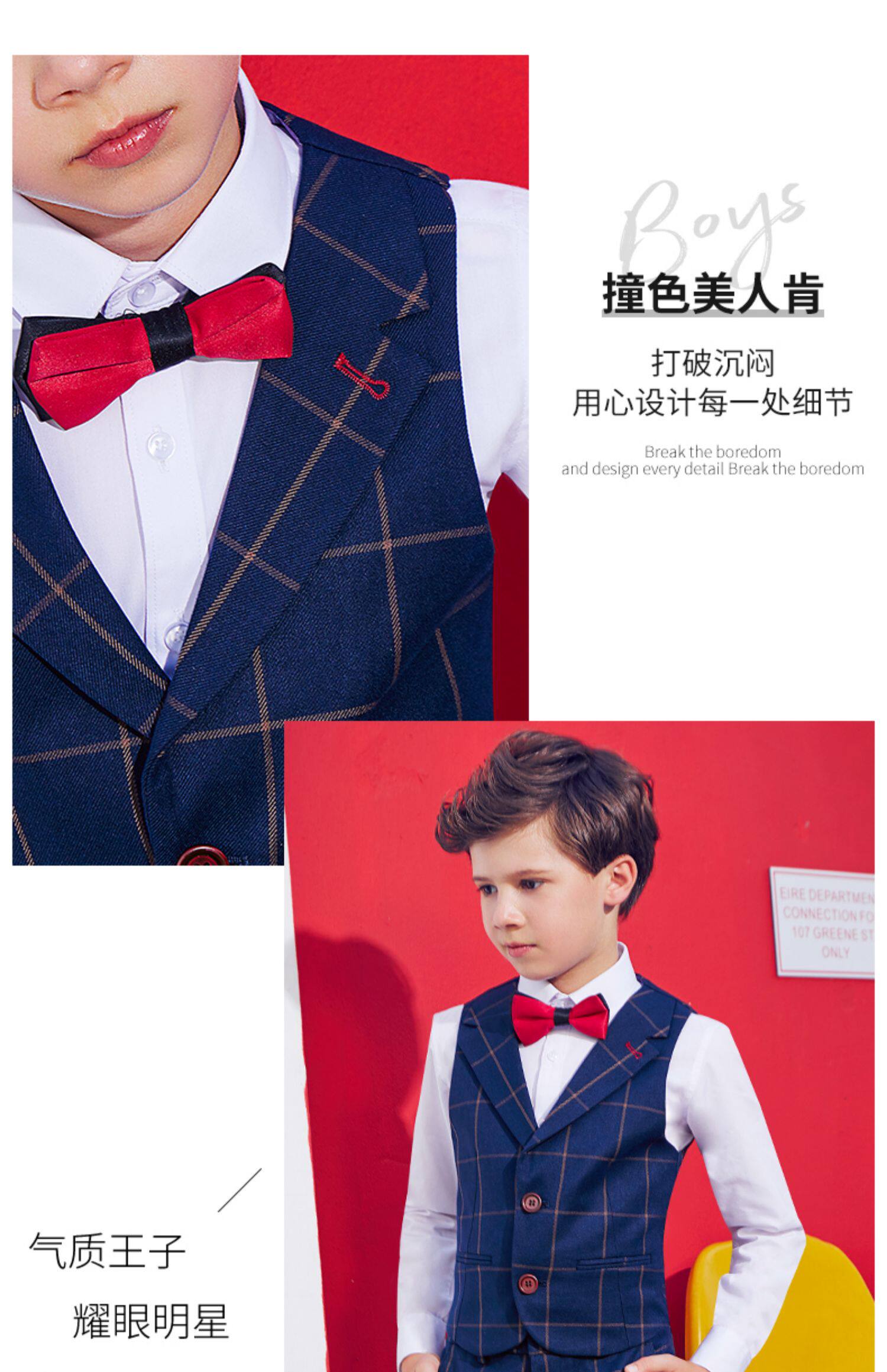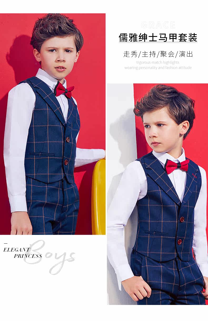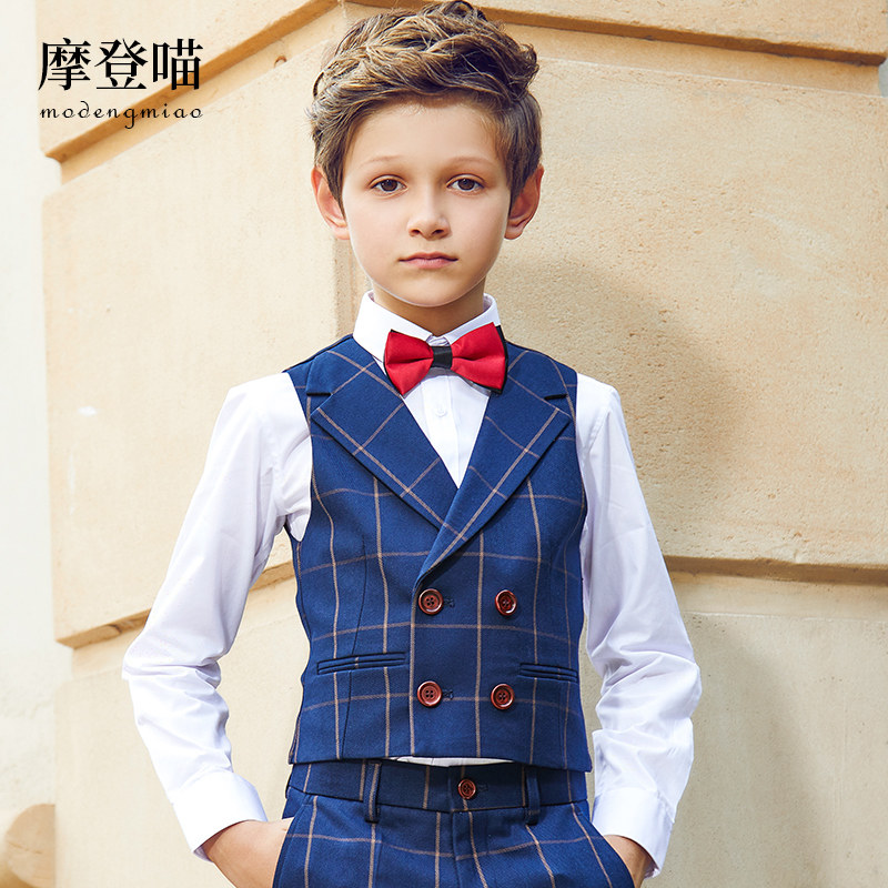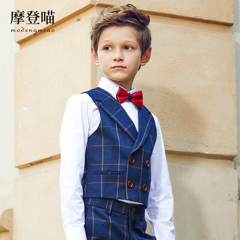 摩登喵 Детский классический костюм, пианино для мальчиков, наряд для музыкальных выступлений, жилет, платье, осенний сезон